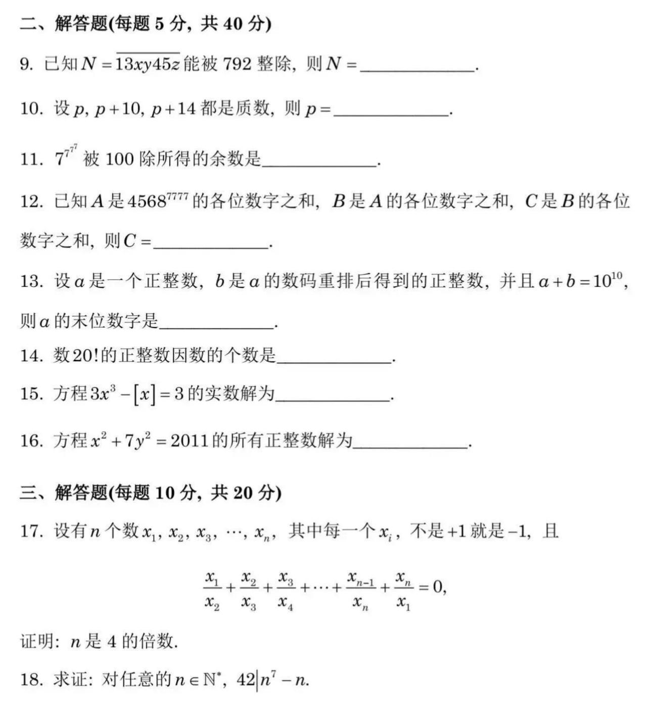 数学竞赛生怕什么 怕数论 我学生时代也怕 所以路没走宽 如果孩子是数竞潜力生 建议花点时间专研数论 (我发资料一般有答案,但这份没有[呲牙])