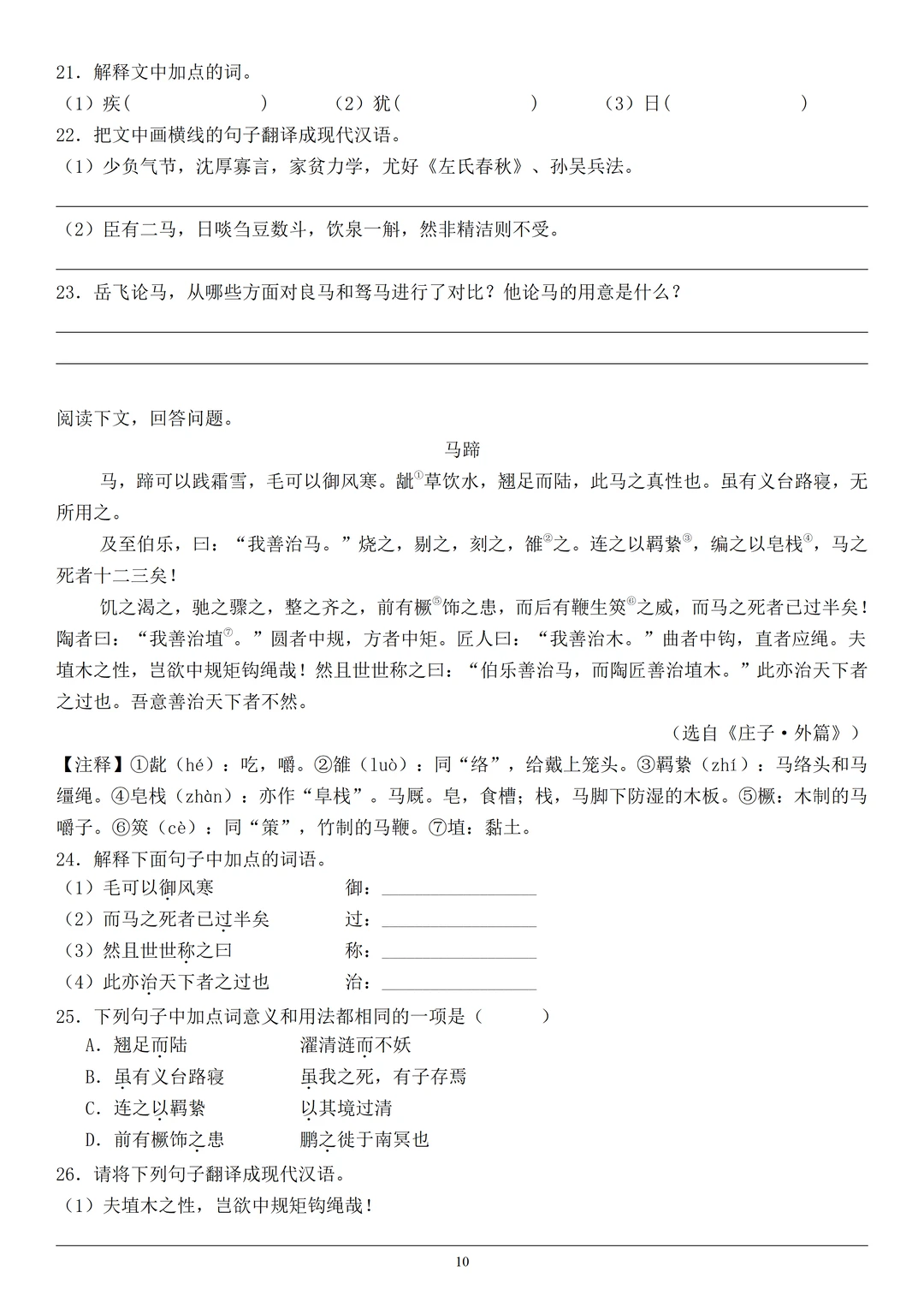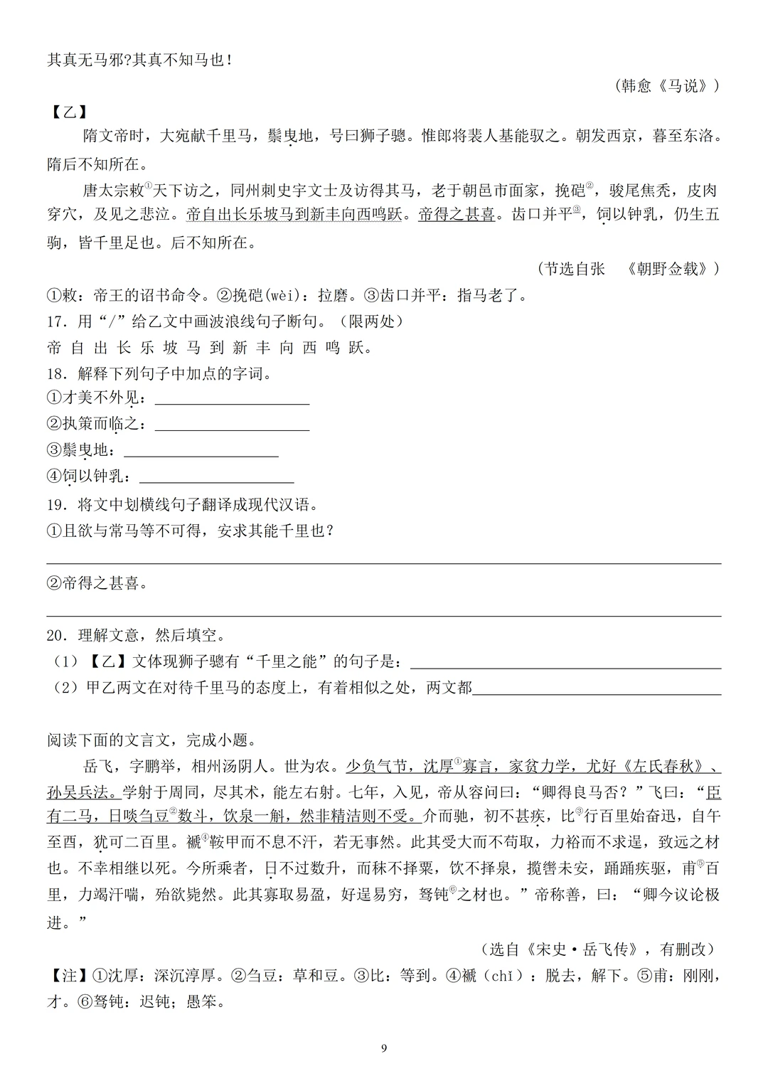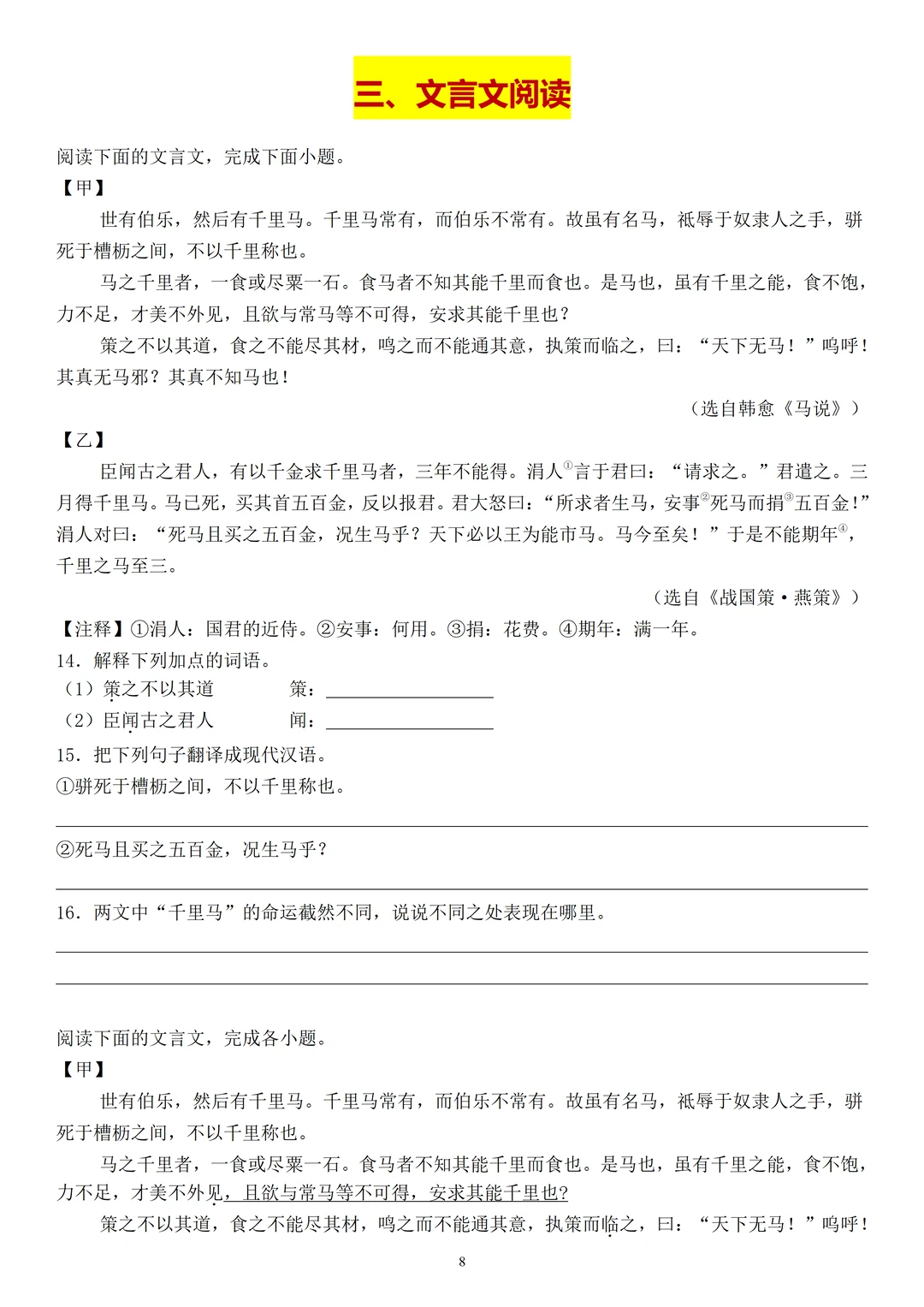 准备了两篇与《马说》的课内外对比阅读和三篇课外文言文阅读,帮大家巩固文言文知识。