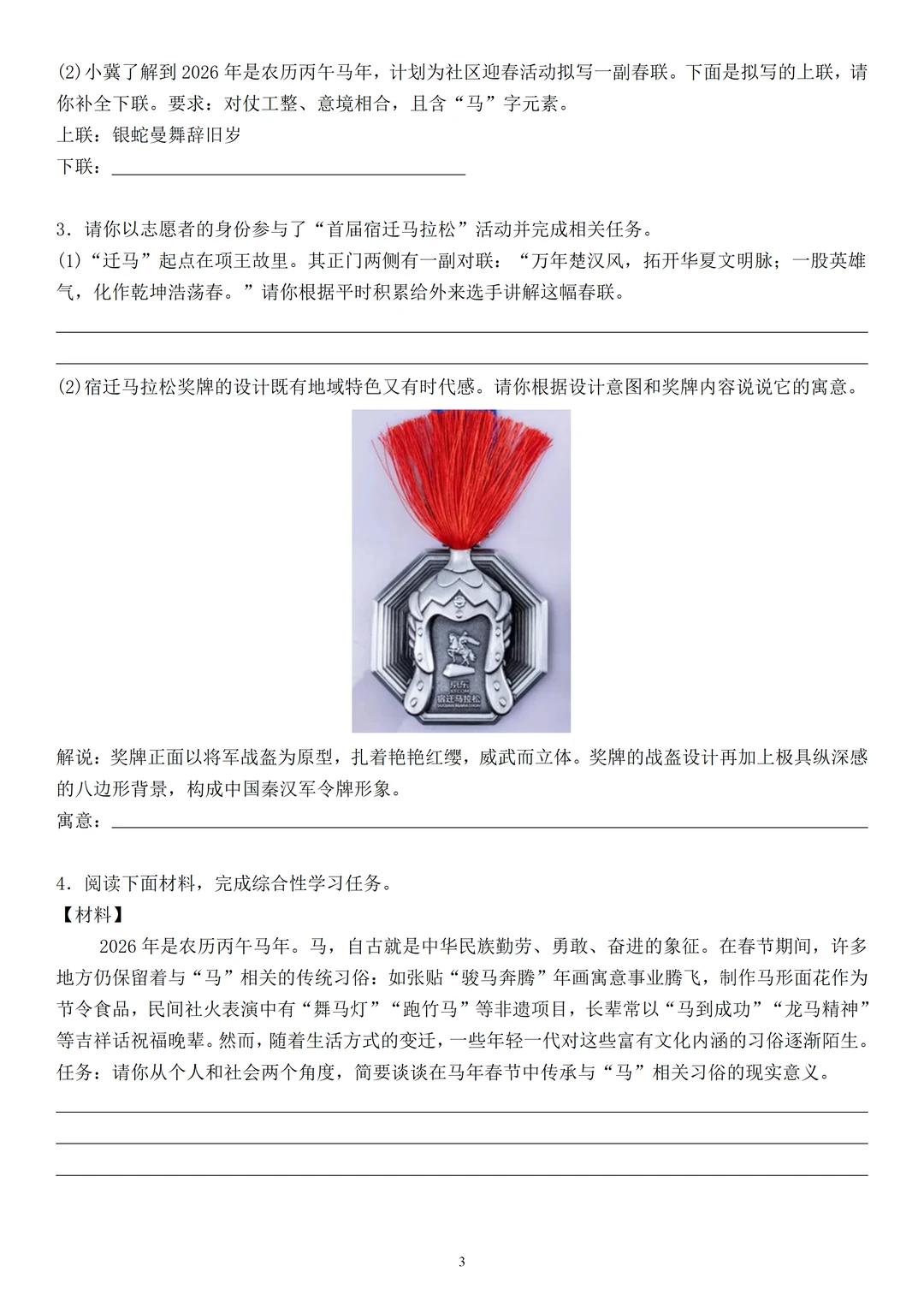 ✨今年是马年!大家都知道,初中语文考试中,节日、生肖等相关题材向来是高频考点,而“马”作为兼具文化底蕴与文学意象的主题,很有可能汇出现在今年的月考、期中考、期末甚至是中考试卷上
