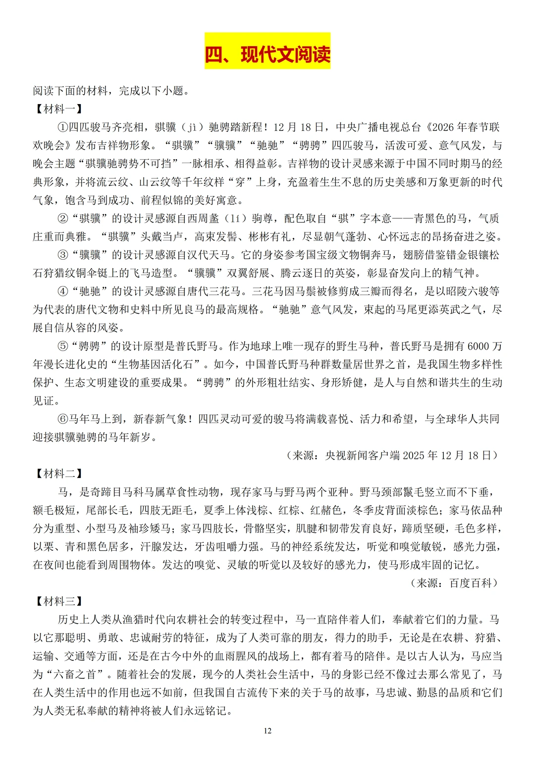 [赞R]为帮大家从容应考,我们精心挑选了20组初中语文马年阅读题,覆盖综合性学习、古诗词、文言文、现代文阅读四大板块,让你遇到“马”元素相关的创新考题,也能轻松应对,拉开分差!