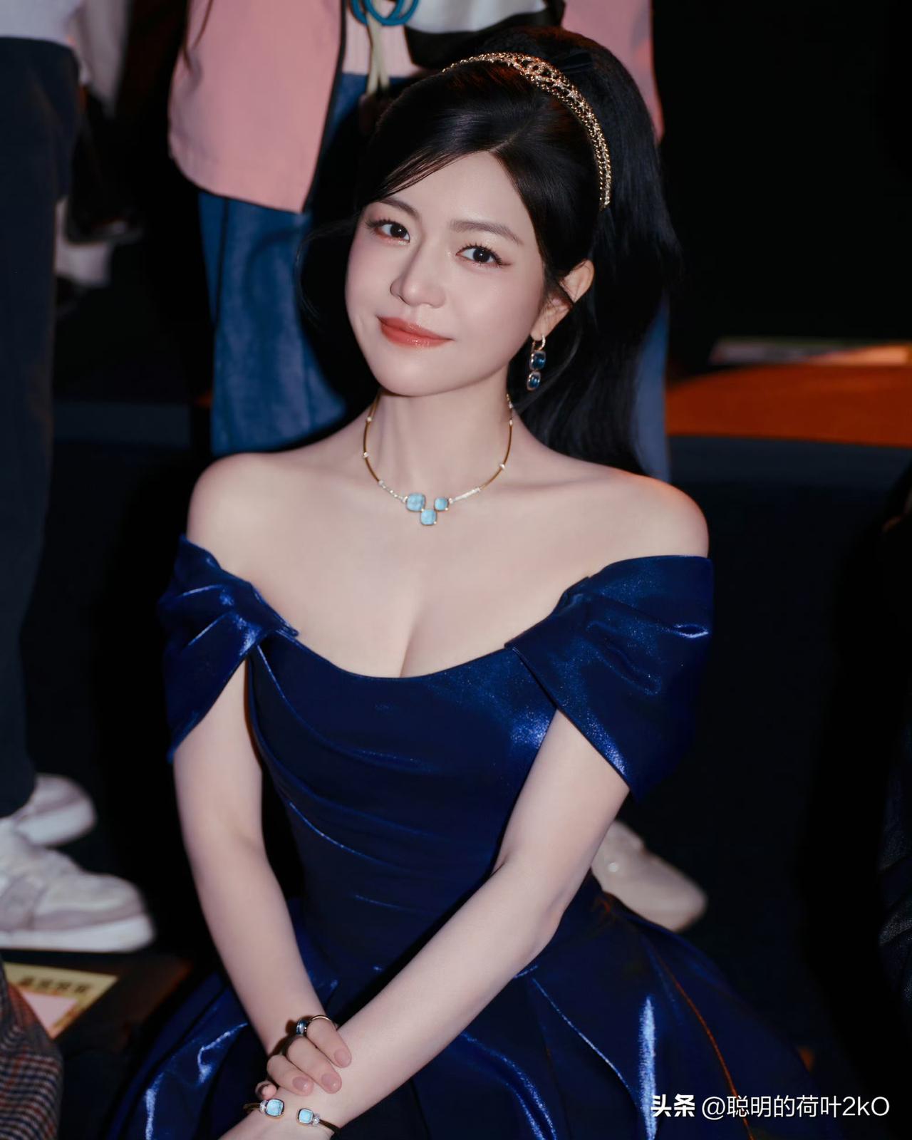 陈妍希 宝蓝丝绒裹着腰肢,水钻凉鞋踩碎所有矜持。她立在光瀑中央,每一步都溅起细