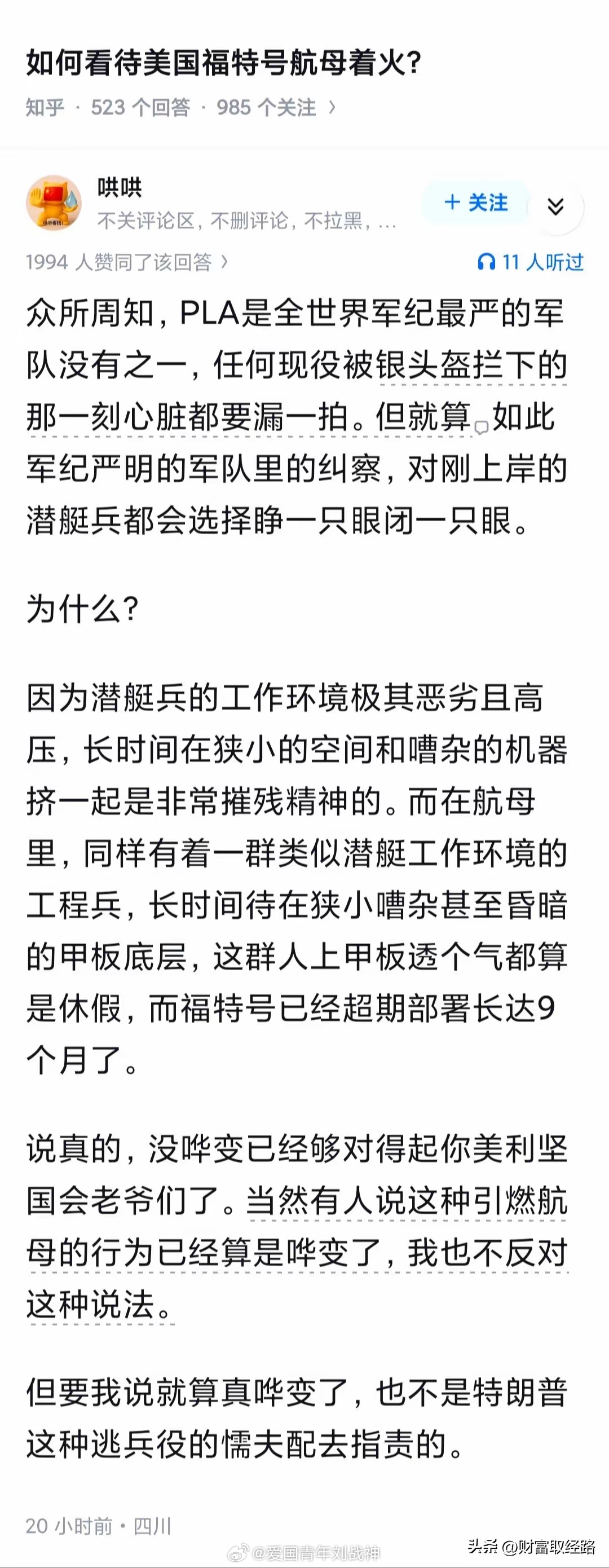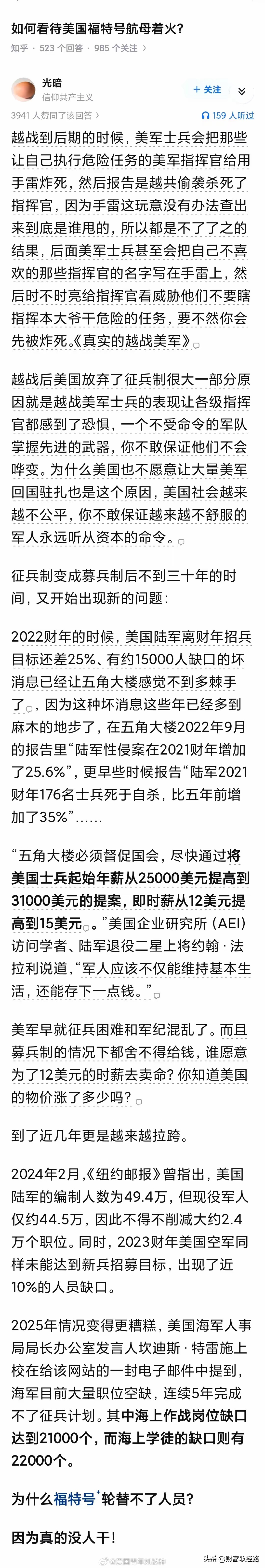 “如何看待美国福特号航母着火?”