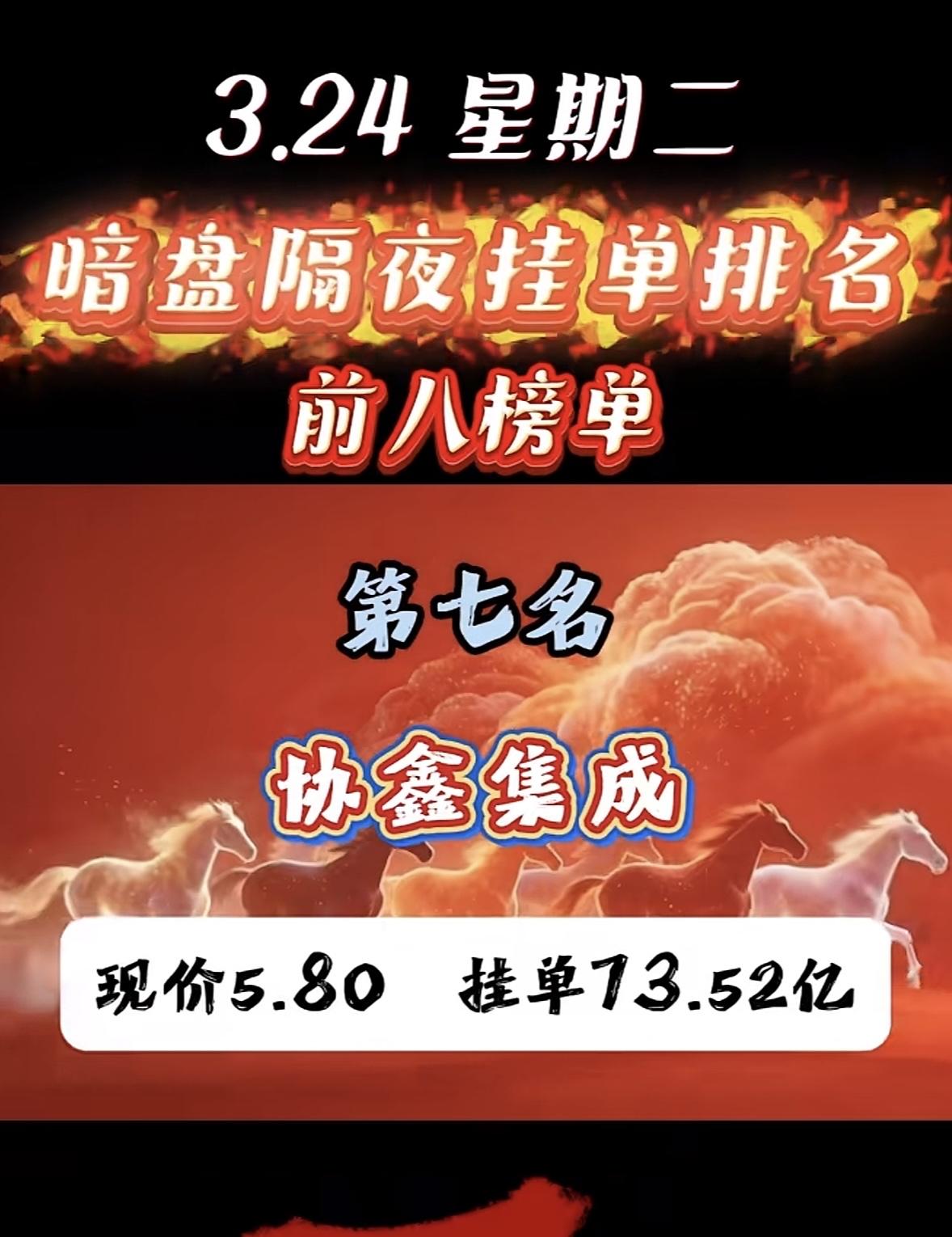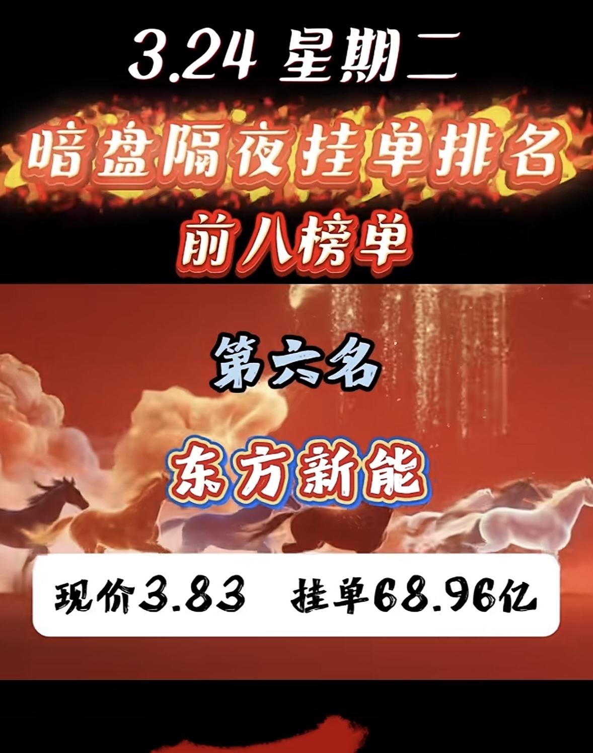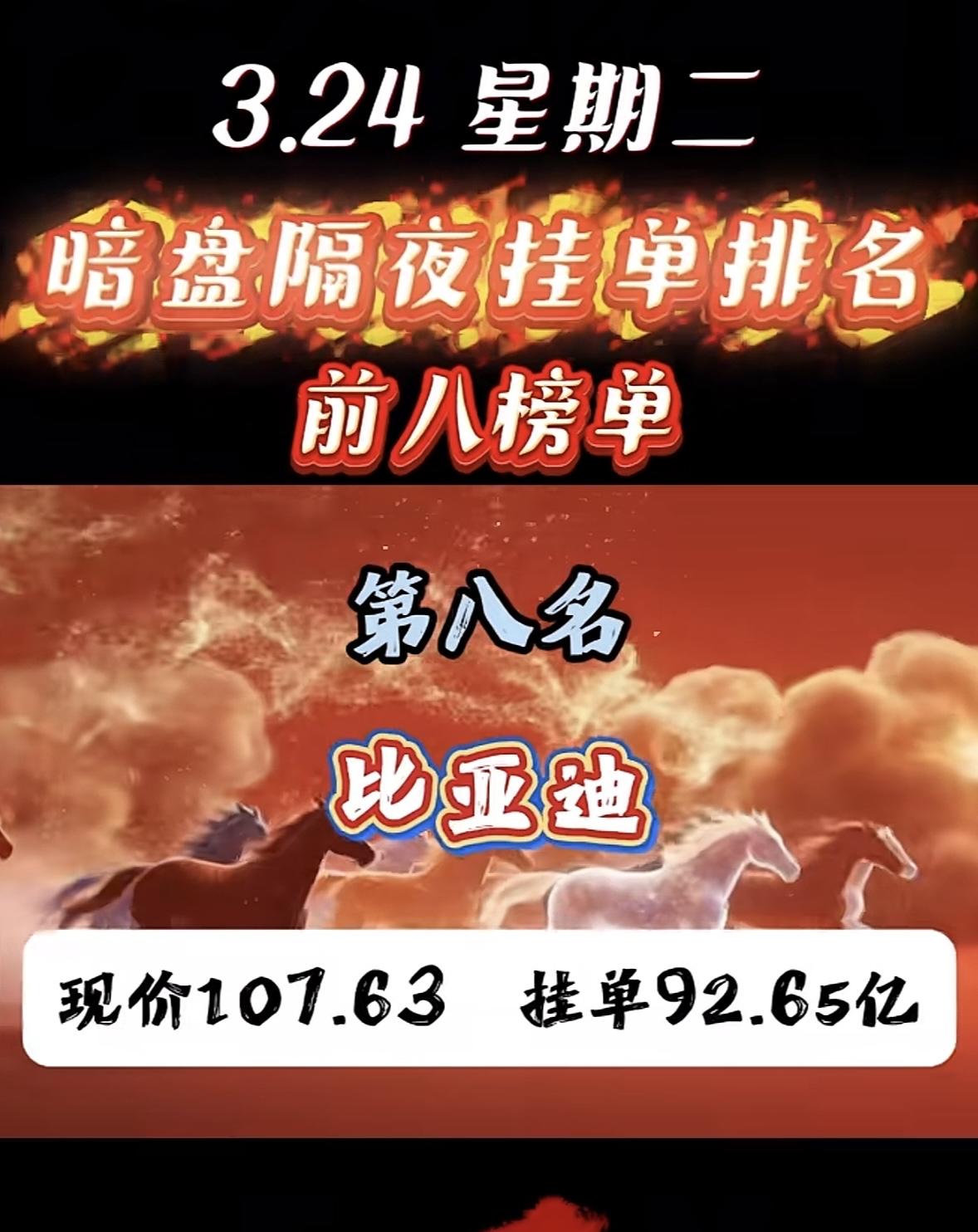 3月24日周二暗盘隔夜挂单个股揭晓 昨天3月23日暗盘隔夜挂单排名前八揭晓啦!
