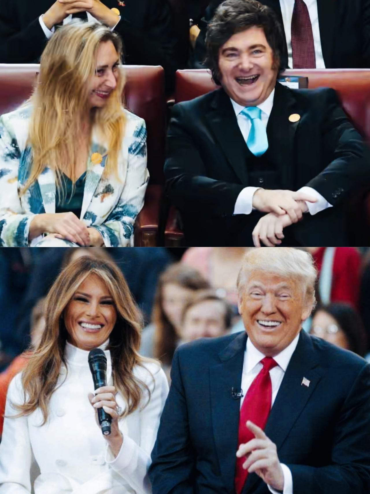特朗普和米莱两人相比,谁的笑容更夸张啊? 特朗普和米莱是不是不仅发型和长相有几分