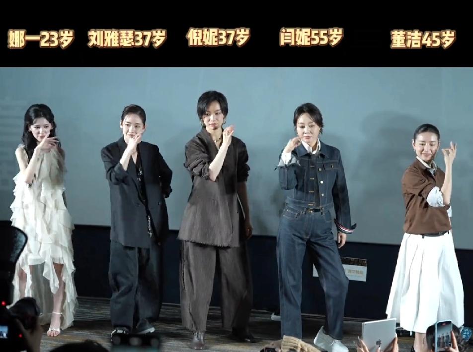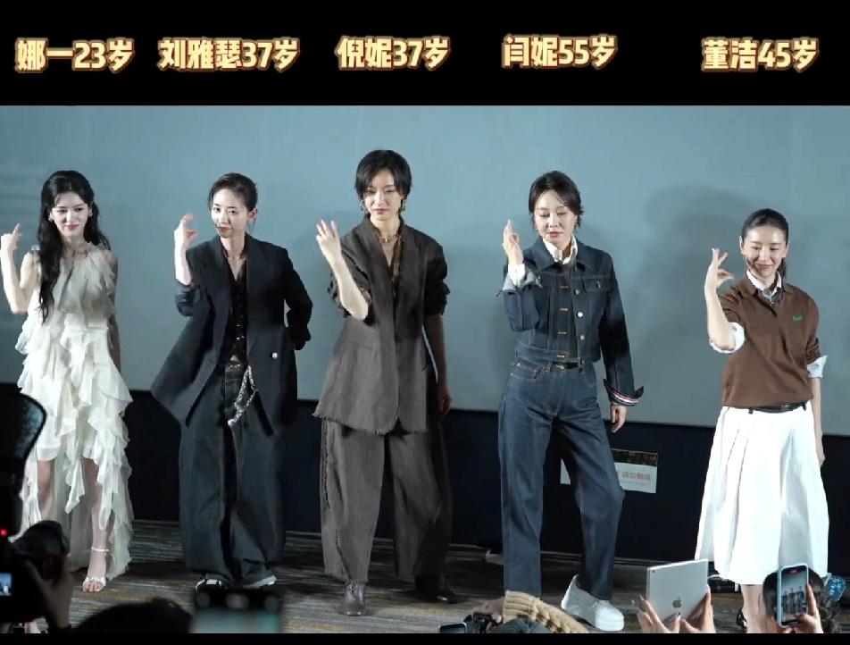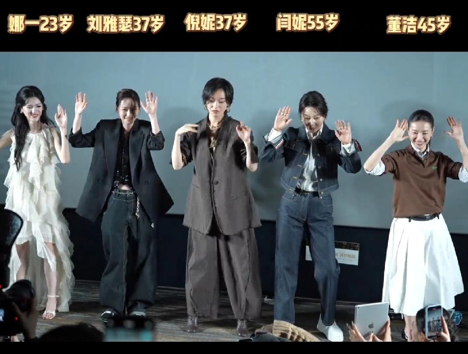 董洁可惜了,45岁和23岁的一样站位,她火的时候这一排的人都是小透明呢,如今45岁了,还只能站在最边上,刘雅瑟的站位都比她强,也是,人家刘雅瑟也是金像奖影后呢!董洁不愧是专业跳舞的,动作就是比其他人做的优美些,这一排人刘雅瑟跳得最有腔调,倪妮跳得最酷,闫妮跳得最带感,不过,要论跳得最优雅的,还得是董洁!