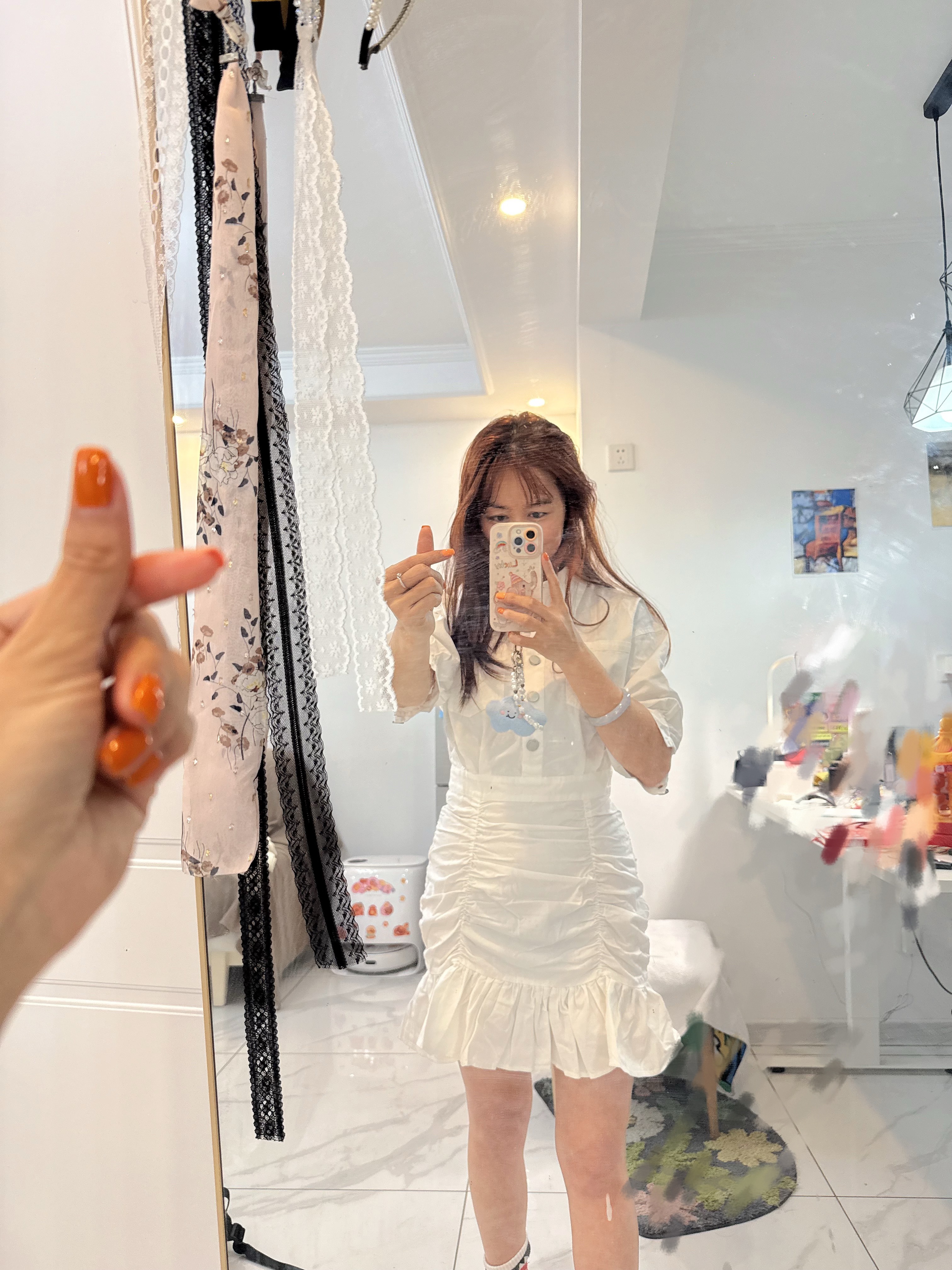 早安,穿上了同事给我送的小白裙,上身白衬衫,下面是🧜♀️荷叶百褶裙,感觉瘦子穿