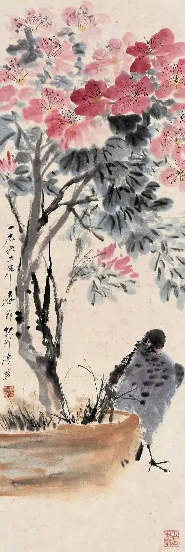 唐云花鸟画,取法八大、冬心、新罗诸家,山水自元四家入手,兼涉明代沈石田、清代抓住