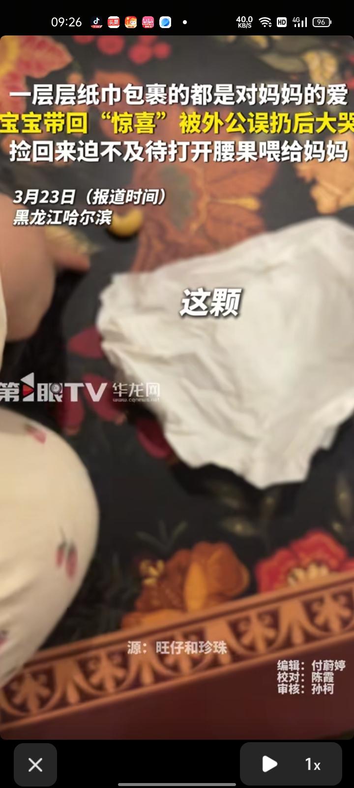 3月20日,黑龙江哈尔滨。一层层纸巾包裹着对妈妈的爱,孩子妈妈于女士晒视频表示,自己对女儿说喜欢吃腰果,女儿立马就记住了。那天幼儿园下午吃腰果,她就带一颗回来,然后用纸巾包裹住放桌上,没想到外公误认为是废纸团就扔掉了,等女儿回来找纸团找不到的时候就哭了。 外公见状就去垃圾桶把纸团翻出来了,找到纸团后,女儿迫不及待的拿出腰果。能看得出来,女儿平时很细心且贴心。