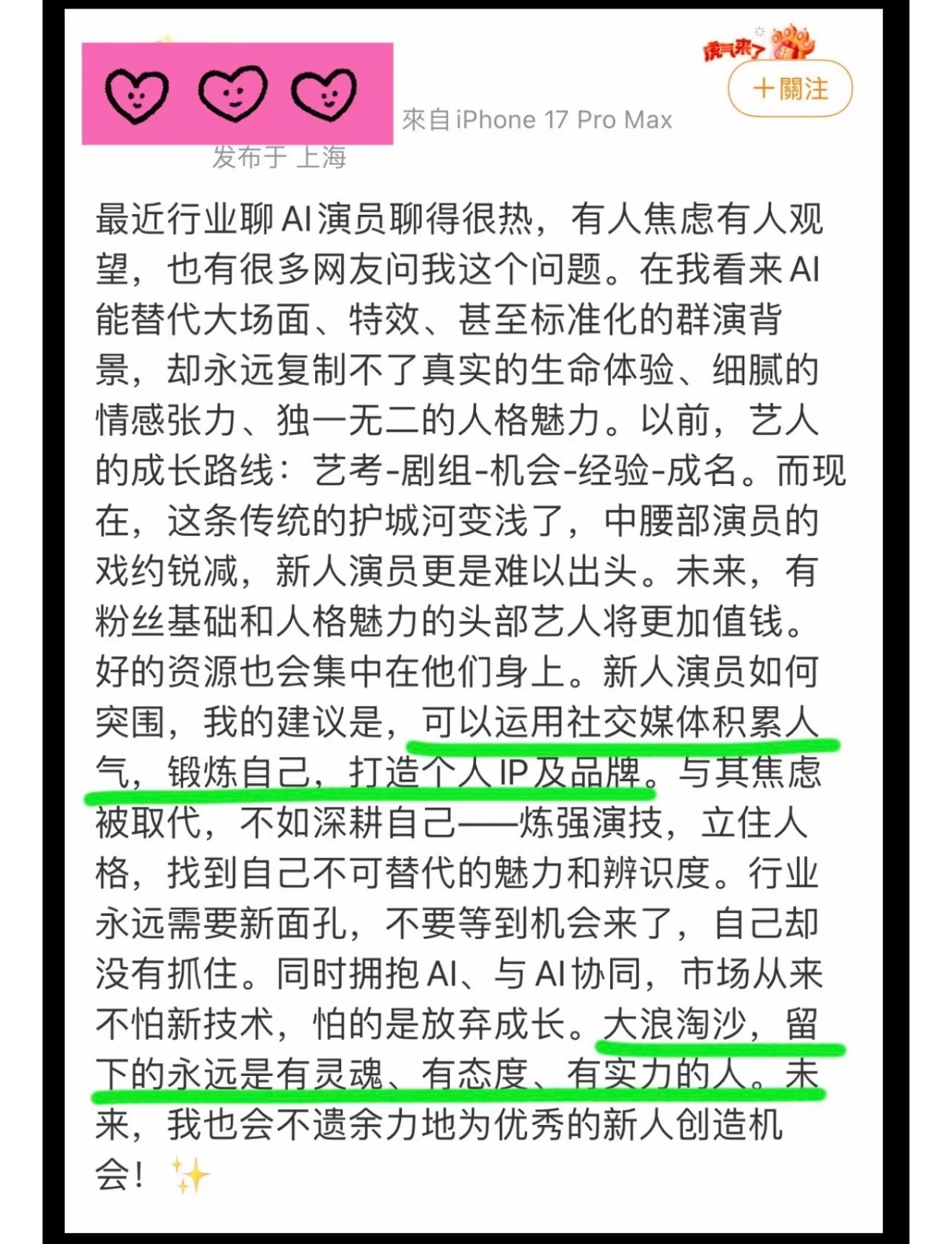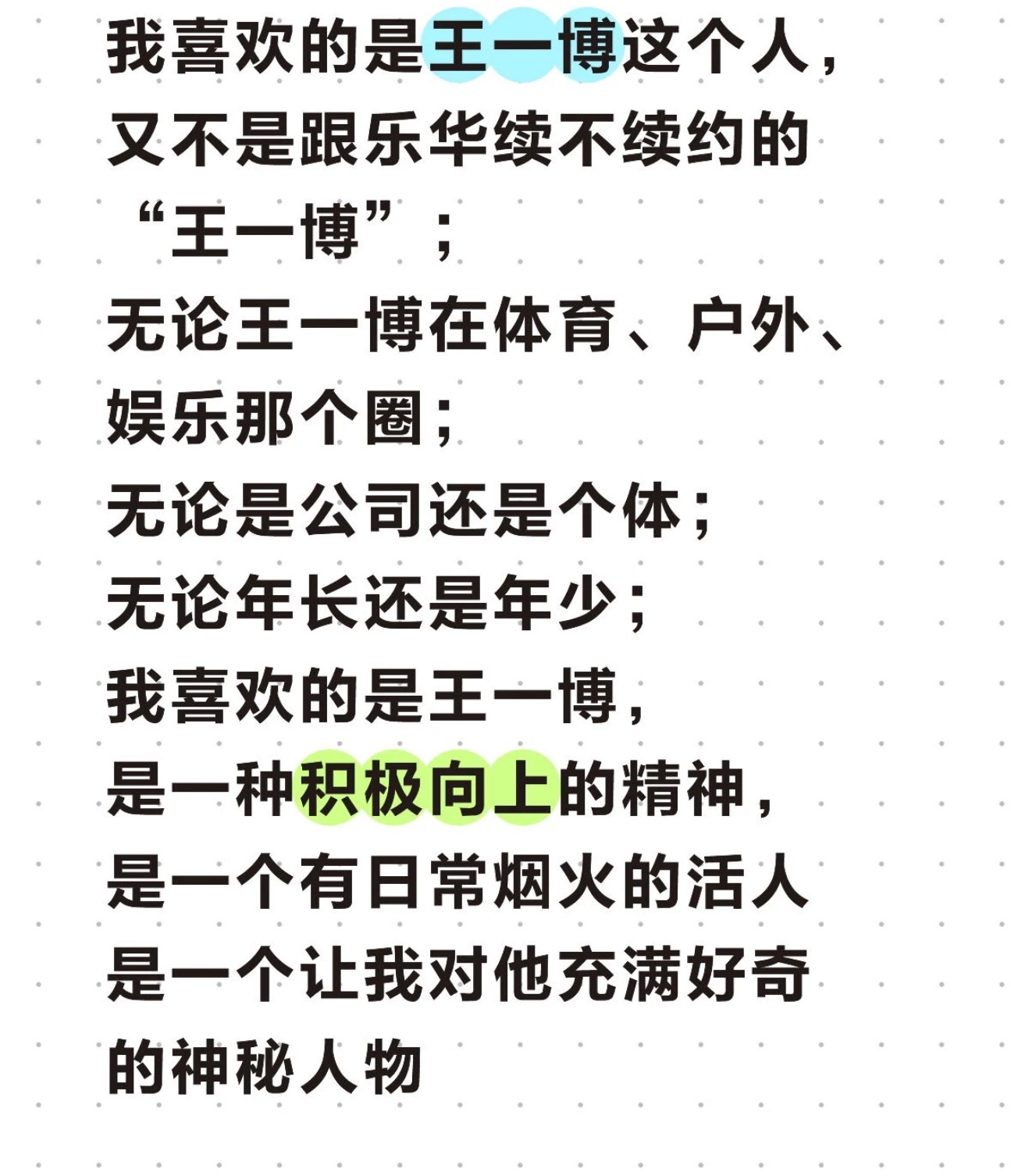 说的一点没错。王一博深耕自己等热爱,一直默默地在努力,干一行行一行,渐渐地形成了现在个人ip,太厉害了😃😃👍🏻👍🏻