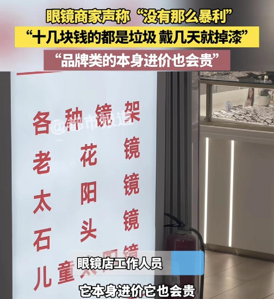 河南郑州一眼镜批发市场,不少批发商表示网上报道的眼镜行业是暴利不属实,十几块的眼镜基本上是垃圾,戴几天眼镜框就会掉刺,眼镜柜的进货价也会贵,一分钱一分货。尽管如此,消费者的体验才是最真实的很多人觉得几百块跟几块千块的眼镜真的没有多大的区别。即便买了几千块的眼镜也同上也同样会出现不少的问题。