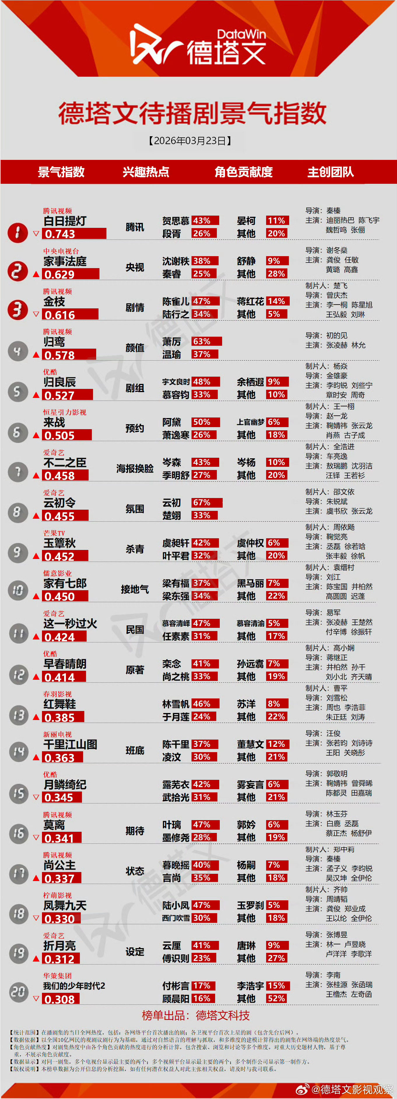 德塔文待播剧景气指数迪丽热巴白日提灯top1,期待值拉满了❗️