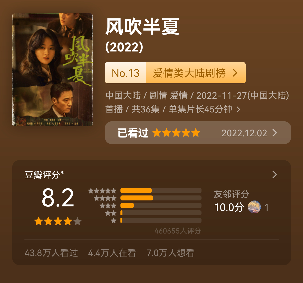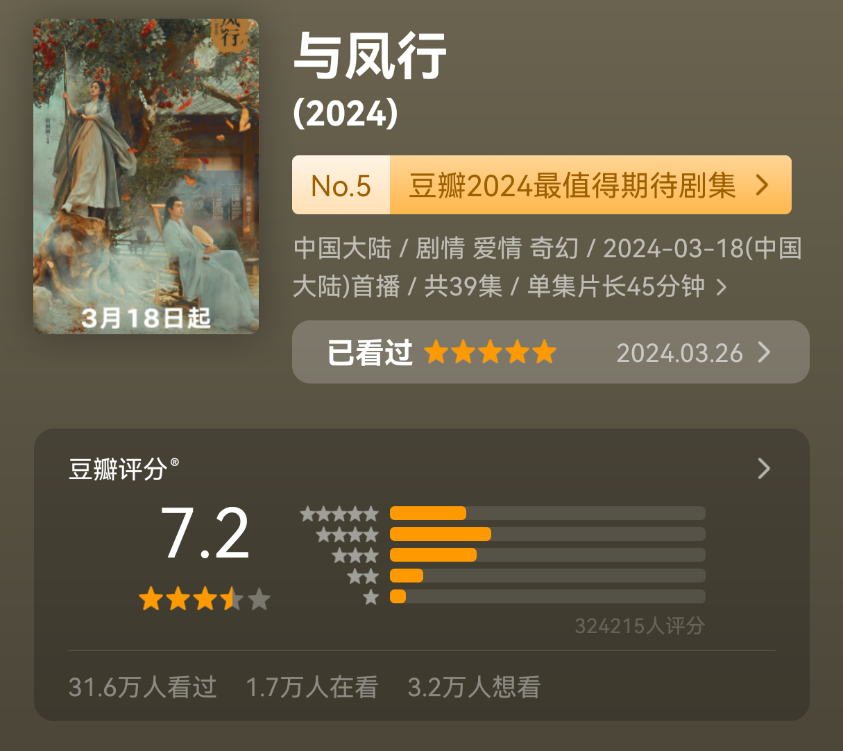 这又是什么夜机爆剧评分统计,删掉赵丽颖史亚的《与凤行》和同时拿下飞天金鹰双料视后的《风吹半夏》就可以自欺欺人了吗?《与凤行》31.6万人,7.分《风吹半夏》43.8万人,8.2分