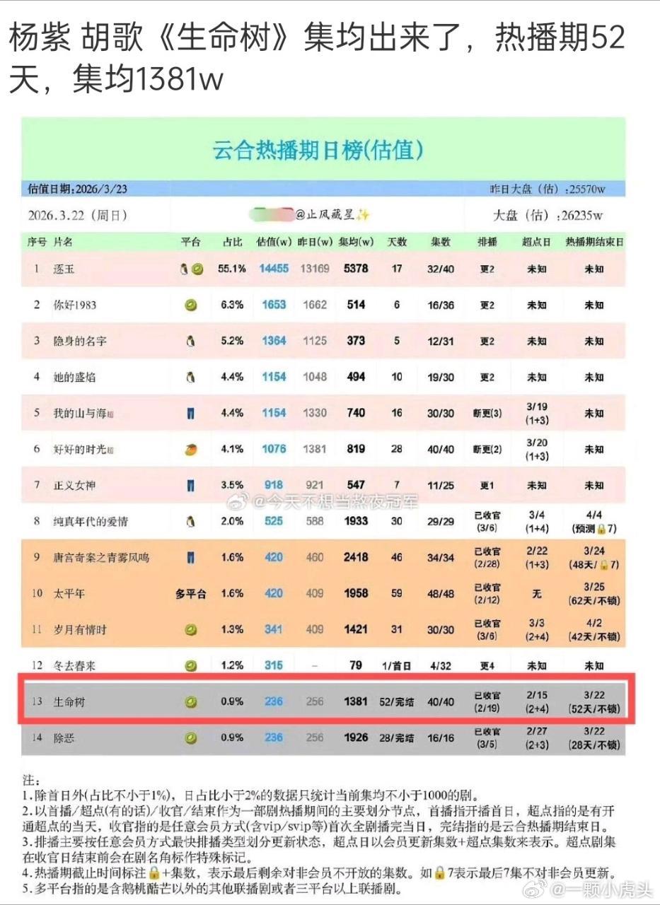 生命树的热播期怎么这么长??52天?生命树集均1381万