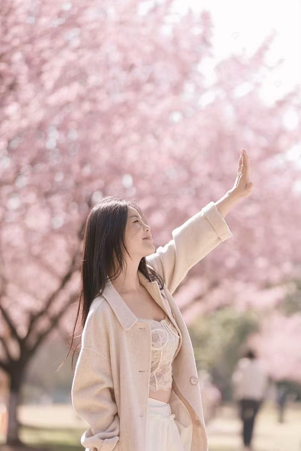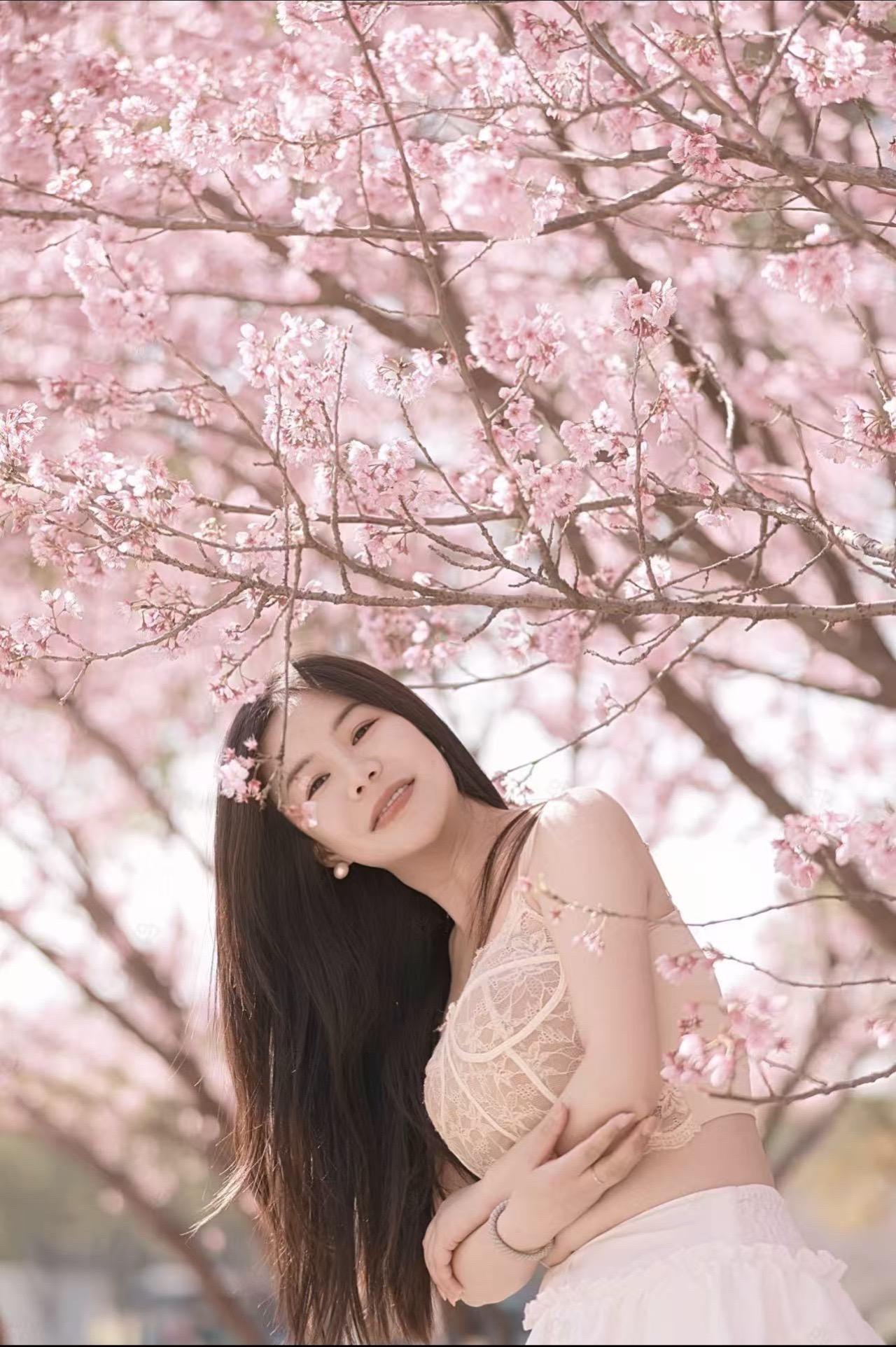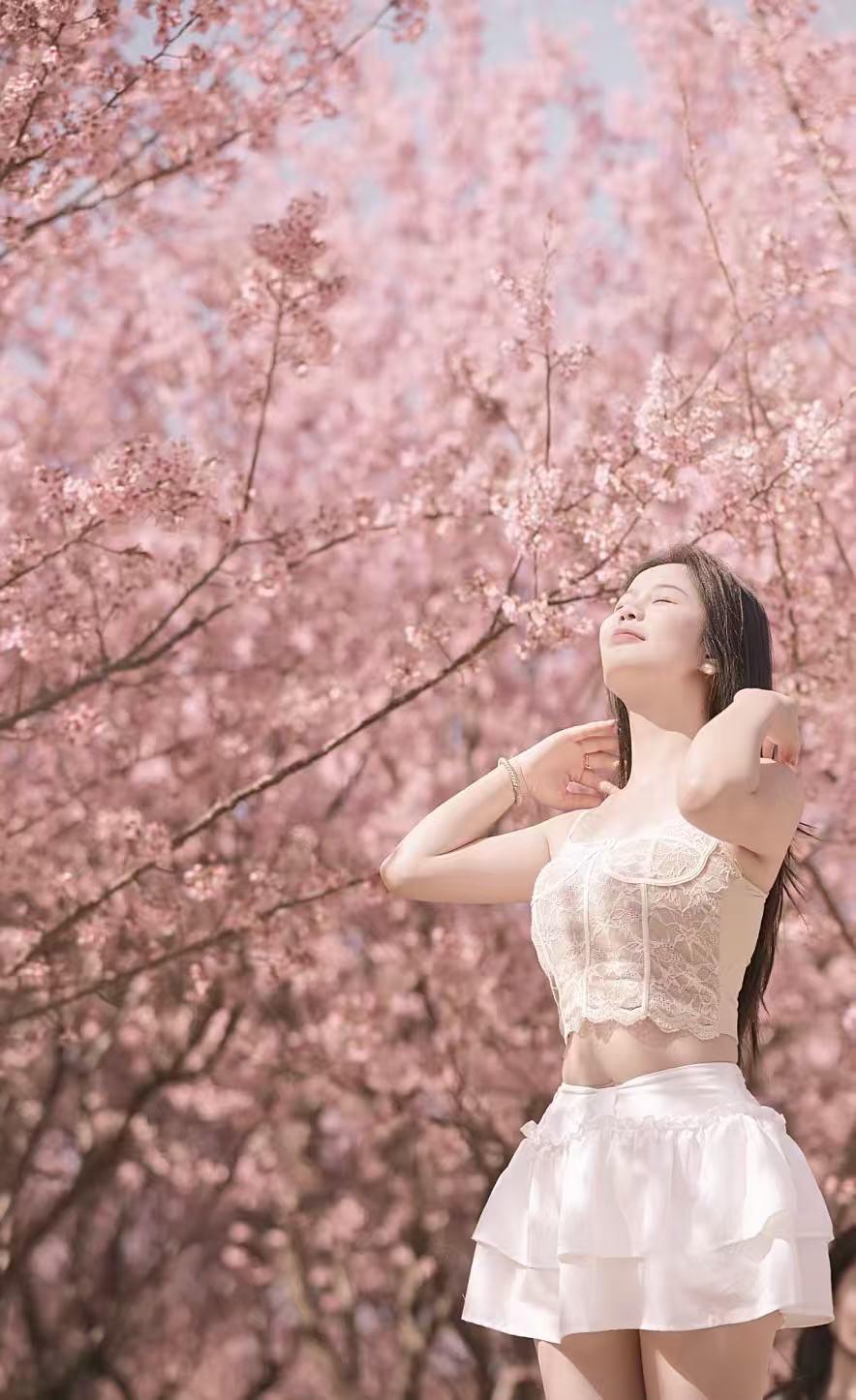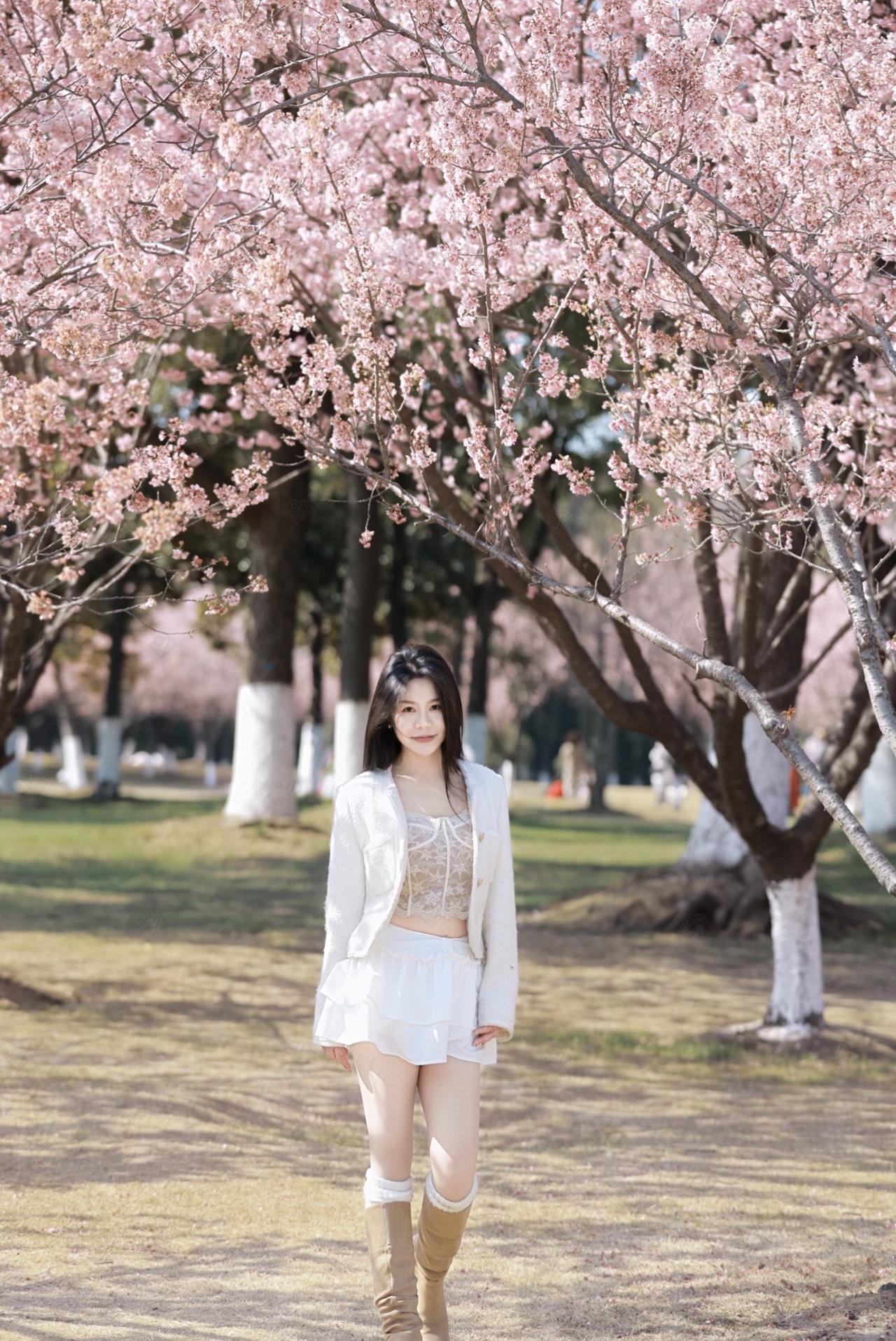 樱花季甜妹穿搭 小狗 西施犬 樱花 摄影