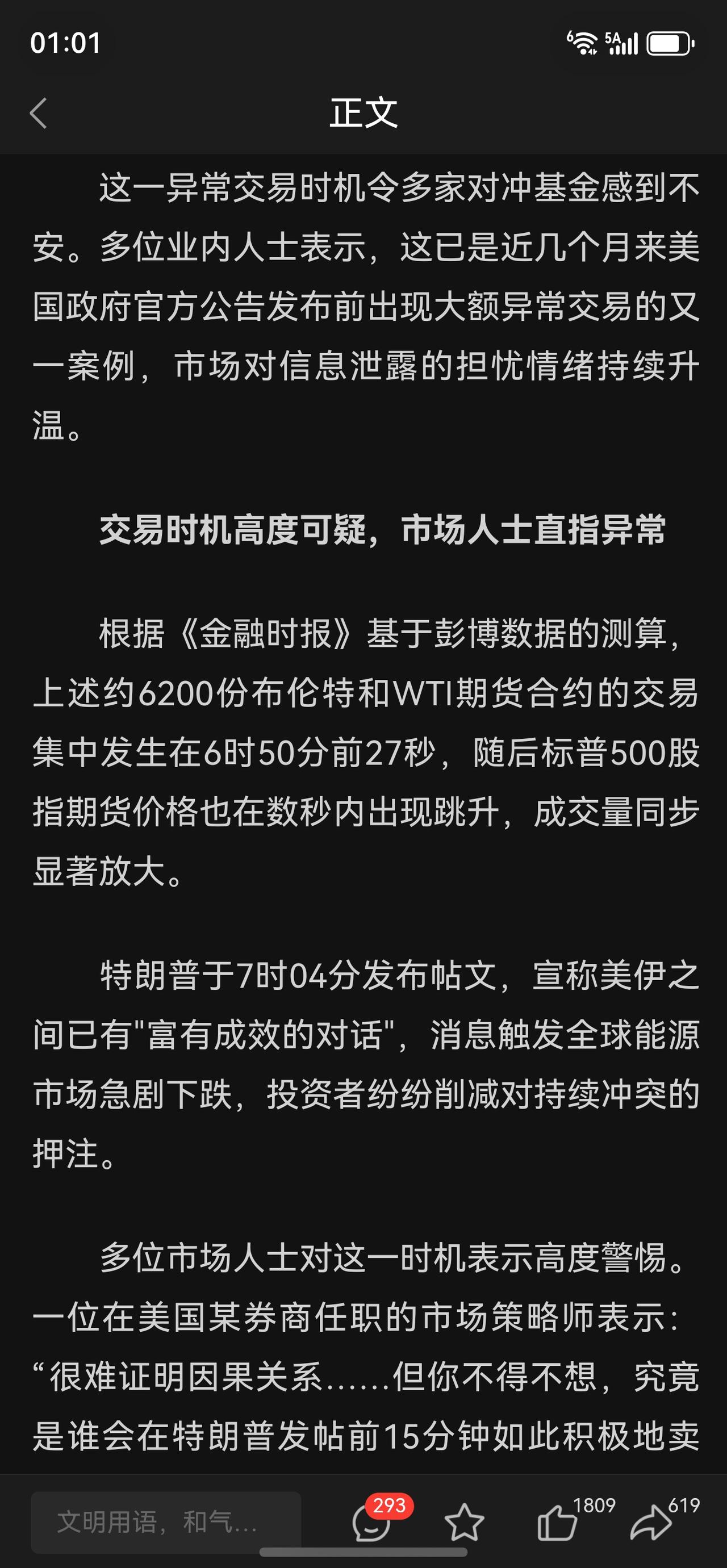 我和大家多次讲过,特朗普背后有人在炒股票,他们要趁着特朗普在任大赚特赚,现在就是不断利用这种信息差在疯狂坐套利。 石油4月1号做交割,到时候拿不出那么多现货来交割,或者逼着高价购入石油来交割,正在涨的时候是那会。 只要战争一天不结束,石油危机就会夸大一天,谁也不想自己的国家经济出现停滞,所以宁愿高价也要购入。 然后就是产油国拿到好处越多,就越不希望战争停下来,想伊朗俄罗斯这些,已经都打成这样了,并且现在似乎拿到的好处还比以前多,干嘛要停下来呢? 其次就是,英法德为首的老牌国家,其实也有自己的算盘,也希望特朗普倒台,中东那些大户,其实也想拿回战略自主权。 所以这场战争一时半会是停不下来了。