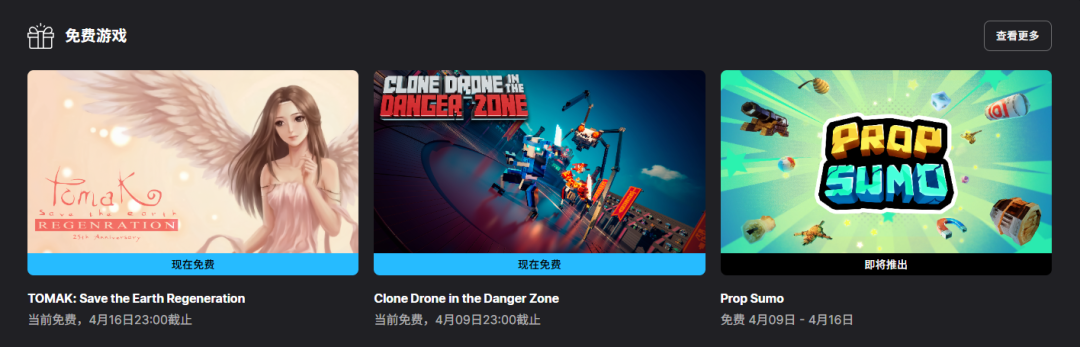 本周Epic商店送出的游戏是《TOMAK:拯救地球重生》和《克隆机器人大乱斗》,领取时间截止到4月9日23点。