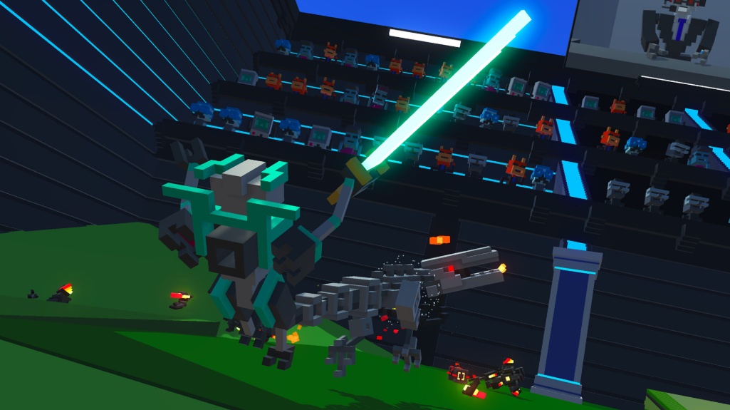 2.《克隆机器人大乱斗》是一款第三人称刀剑格斗游戏,支持中文。在游戏中你身体的任何部位都有可能被削的七零八落。由于意识被下载到了一个机器人角斗士身上,你必须在斗技场残酷的考验中顽强的活下来。