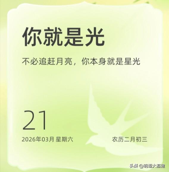 三月的风里,藏着许多温柔的提醒。 快乐是可以储蓄的——它说,你的快乐余额已满格,请放心去笑。 春光是可以收藏的——拾一片夹进书页,今天的欢喜便永不褪色。 日子难免平淡,但你可以给自己买颗糖,让生活瞬间甜起来。 不必总抬头追赶远方的月亮,低头看看,你本身就散发着星光。 那些看似寻常的等待里,生活的小确幸,正一一奔向你。 而那些默默努力的时刻,也从不会白费——它们都在悄悄发光。 三月将尽,春天正浓。愿你揣着这些暖意,在自己的路上,继续闪闪发亮。