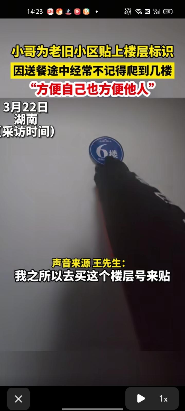 3月24日,湖南衡阳。不送外卖就不知道楼层的重要性,外卖小哥爬楼层爬到懵,送餐时发现很多老旧小区没标记楼层数,就花钱买楼层贴贴墙上。标记楼层不仅方便了自己,也方便了别人