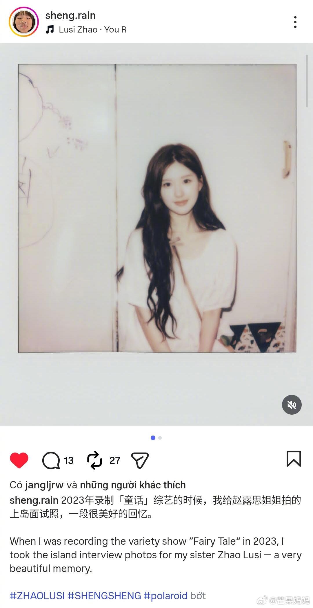 笙笙ins发了2023年录制《童话》时为赵露思拍的拍立得,穿着小白裙太美好了🥹