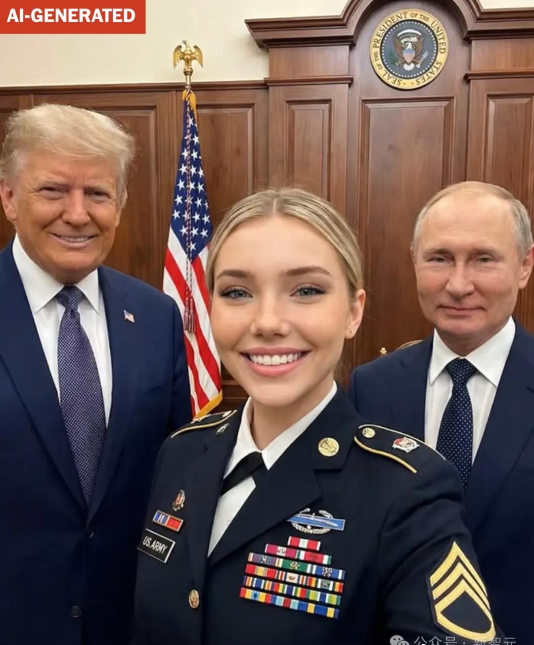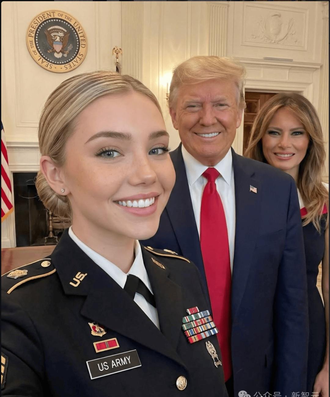 各位大神真敢恶搞呀,网上火了好些天的走在大统领身边的军装女神,居然是AI创造,子虚乌有。 前几天,还有人说这是漂亮国陆军的大领导。看在大统领用人不拘一格之风格的份上,大家基本上都信了,即使她作出好多个性化的制服控动作。 如今,有人出来披露,说这都是虚拟的,子虚乌有。不可思议、不可信赖、不可言喻、不可估量、不可宽容、不可纵容的网络、AI和这个世界!