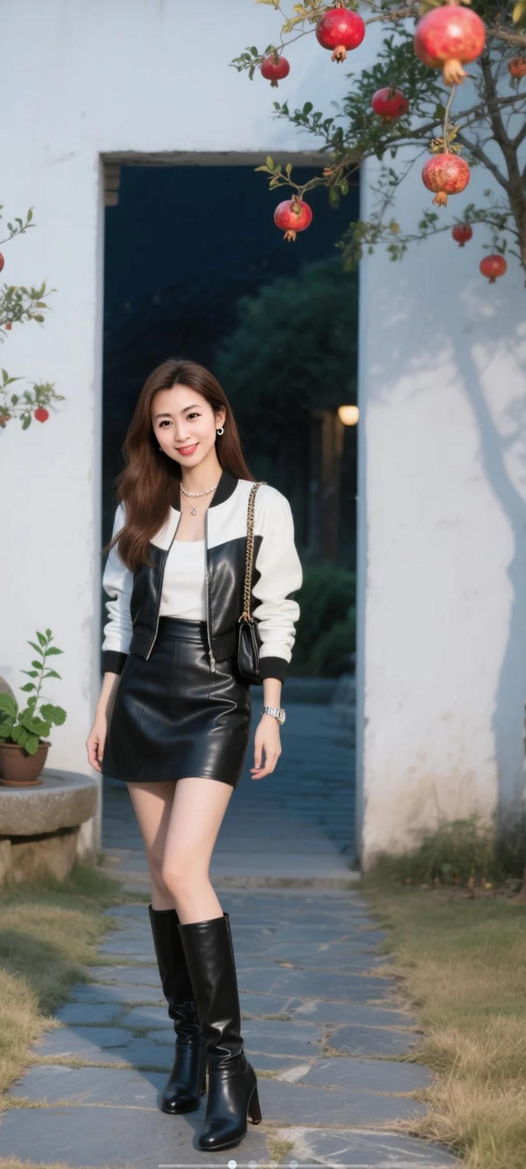 温柔气质穿搭,白色毛衣搭配黑色短裙,优雅动人。