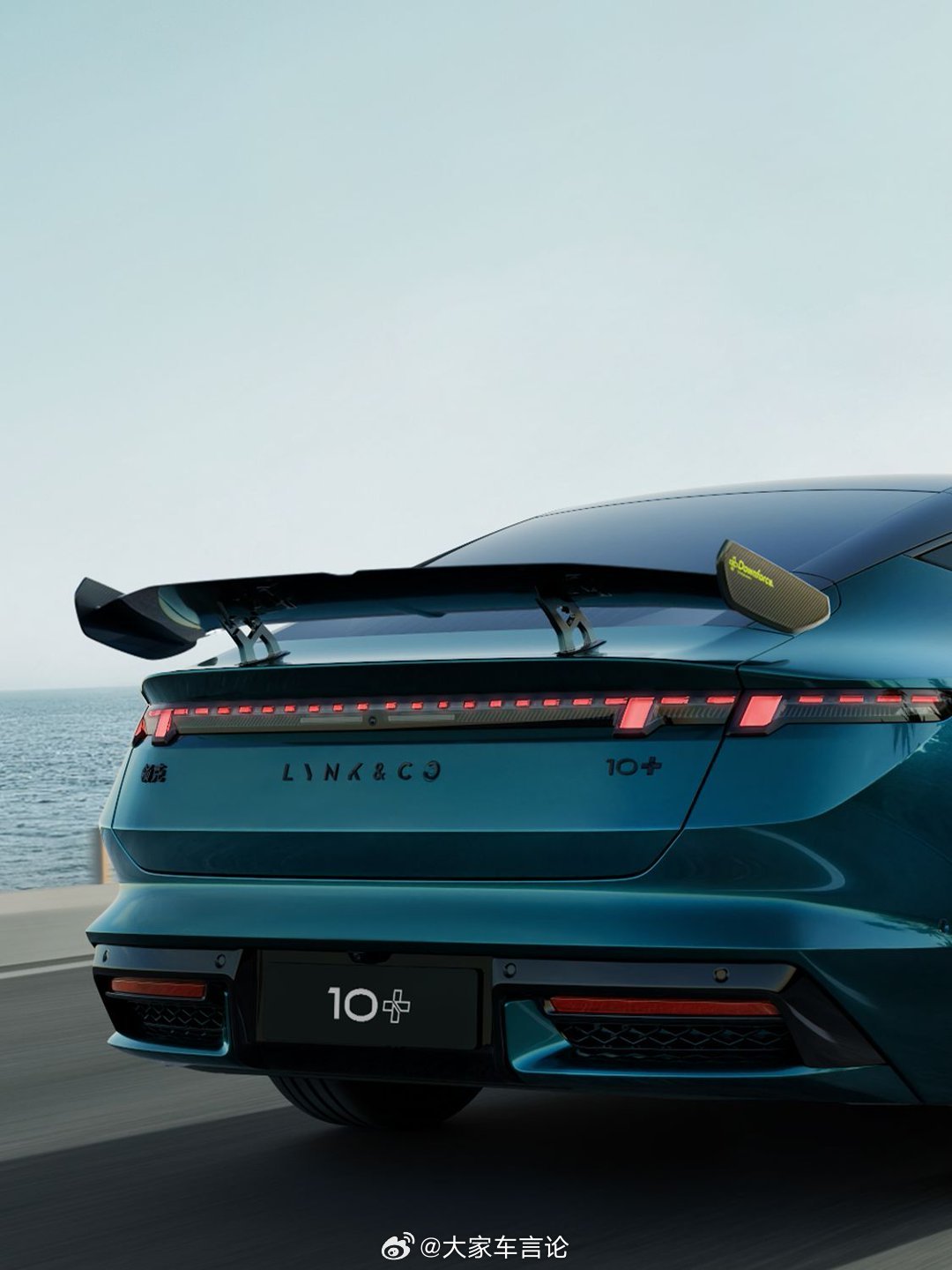 拥有碳纤大尾翼的领克10+登场,新车搭载双电机四驱,综合功率680kW,最大马力