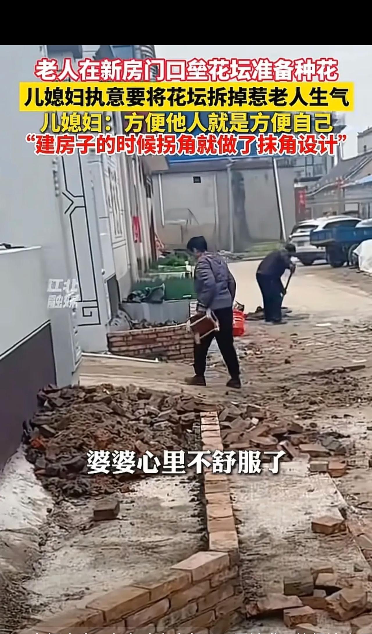 “这儿媳有格局!”河南周口,公公在新房门口垒了小花坛,儿媳坚持让公公拆掉,给公公惹生气了,儿媳觉得自己没错,她说房子在一拐角路口,拆掉花坛后村民开车方便,可公公心里还是不痛快,而儿媳还说了一件事,网友却称赞她通情达理。 新房刚盖好,公公看着门口空地心疼,搬砖和泥亲手垒了个漂漂亮亮的小花坛,就等着栽花种草,把家门口打扮得喜气洋洋。 谁料儿媳常女士一看见,当场就说:爸,这花坛必须拆! 公公一下子就火了!我花力气花心思装点自家门口,碍着谁了?你这儿媳怎么专门跟我作对?越想越委屈,脸都拉了下来。 换做一般人,要么哄着老人,要么就算了,但常女士偏偏不退让。 不是她不近人情,而是这房子,正正好好在路口拐角处! 花坛一垒,直接占了通行空间,村民开车拐弯、会车,视线全被挡,稍不注意就会撞上去。真出了事,赔礼、赔钱、闹矛盾,那才是天大的麻烦! 最让人佩服的是,她不是蛮不讲理全拆掉,只拆路口有安全隐患的这一段,其他地方的花坛,全都给公公留着,一点不扫老人的兴。 早在盖房时,她就留了心眼,特意把墙角做成圆角,就为了方便车辆通行。 一句“方便他人,就是方便自己”,简简单单,却藏着最通透的处世智慧。 这事一曝光,网友直接吵翻了: ✅ 夸儿媳的占了一大半:“太有格局了!宁可自己吃亏,也不堵别人的路,这才是真聪明!”“公公是顾小家,儿媳是顾大家,都没错,但儿媳看得更远!”“农村最讲究邻里和睦,这儿媳能处,有事真上道!” ⚠️ 也有人心疼公公:“老人就是想美化家,出发点没错,换谁都生气。”“农村宅基地就怕让,今天让一点,明天别人就觉得是应该的!” 其实从法律上说,《民法典》早就明确,邻里之间要方便生活、团结互助。真因为花坛挡路出了事故,自家反而要担责任。 儿媳看似“忤逆”公公,实则是在替全家避祸! 拆的是小小花坛,守住的是邻里和气,更是一家人的平安。 生活里最难得的,不是争一寸一地的便宜,而是懂得退让一步,成全别人,也安稳自己。 这样明事理、有远见的儿媳,真的太少见了!
