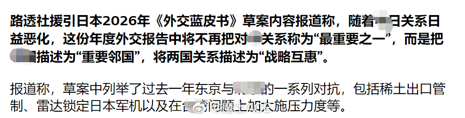外交部回应日方拟将中日关系降级一日本人威胁要杀中国外交人员烽火问鼎计划 不是,小日子把日子都过成这样了?小日子有点急了,开始上下跳了。这次的带刀鬼子兵爬进大使馆,大喊要刺杀我方使馆人员,这不是一起孤立事件。这鬼子兵是趁使馆安保换岗短暂间隙,翻越使馆东侧围墙进去的,拥有极高的预谋性。“以神的名义刺杀”,这理由就把这事往日本内部邪教方面靠了。巧了,尹锡悦和它老婆是邪教的,朴槿惠也是,高市早苗,也给邪教有过关联。另一方面,除了鬼子兵想刺杀,同一天还发生了两个事。一个是日本宣布组建联合舰队,以扫雷、两栖登陆为主。很明显,故意显得自己预备有能力介入到蛙岛里面来的。另一个,就是日本故意让媒体透露出,原本应该在4月份才会公布的《外交蓝皮书》,要对东方的关系进行降级——从原来的“最重要之一”变为“重要邻国”。看上去这是个连招,这也实际上确实是个连招。但这个连招的背后,居然看不到一个经济手段?你看,带刀刺杀,纯暴力手段,属于山口组那桌的,简直是日本特产具象化了。然后故意犹抱琵琶半遮面地往外抖一个“还没确认的文件”,这是ZZ手段,意思是你再这样搞,我ZZ上也不认可双方的原先关系了。但这个文件还没确认公布,故意留了点回旋空间。再然后是军事手段威慑——抽调精英组建专门用于干涉的海军舰队。小日子把日子都过成这样了?一般来说,经济手段能让对方疼,压根都不需要其他手段。你看老川子的关税大战,打了一头包回去,什么都没说就恢复正常了。结果小日子发现,自己搞什么半导体光刻胶限制,完全给韩国做了嫁衣。其他产业自己还不敢断,于是只能搞黑社会手段和军事ZZ威胁手段。如果这事是连招,就不是高市早苗自己在运作,而是其幕僚的动作。这一套连招,看上去就像是黔驴技穷一样,撒泼打滚。不过既然是幕僚的动作,当然还有其他作用——逃避中东战争。老川子给了几次话让日本派遣军队去中东护航,日本想拒绝,怎么办,刚好在撒泼打滚的时候略微激化亚太局面,但让“邪教出手”又整体可控。既让自己不用去中东,也不会完全把亚太局面引爆。但日本不想去中东关我们鸟事,本来既定计划就是整合东亚。老美在中东这番造型,我对我的男儿气魄感到无比自信!日本大目标不去中东,小目标想让东方让步把高市早苗的话当个屁放了。做梦了?现在这番局面,东方没主动把东亚局势推起来它就该拜佛了,还在这为自己的蝇头小利这么跳,反而是把局面在推向我们希望的方向。东方向来,第一次出价是最好的价格。撒泼打滚玩山口组手法,日本得到的只能是雷霆。