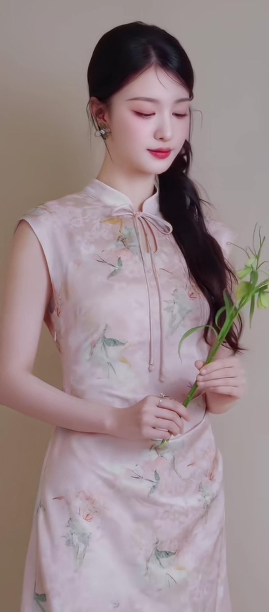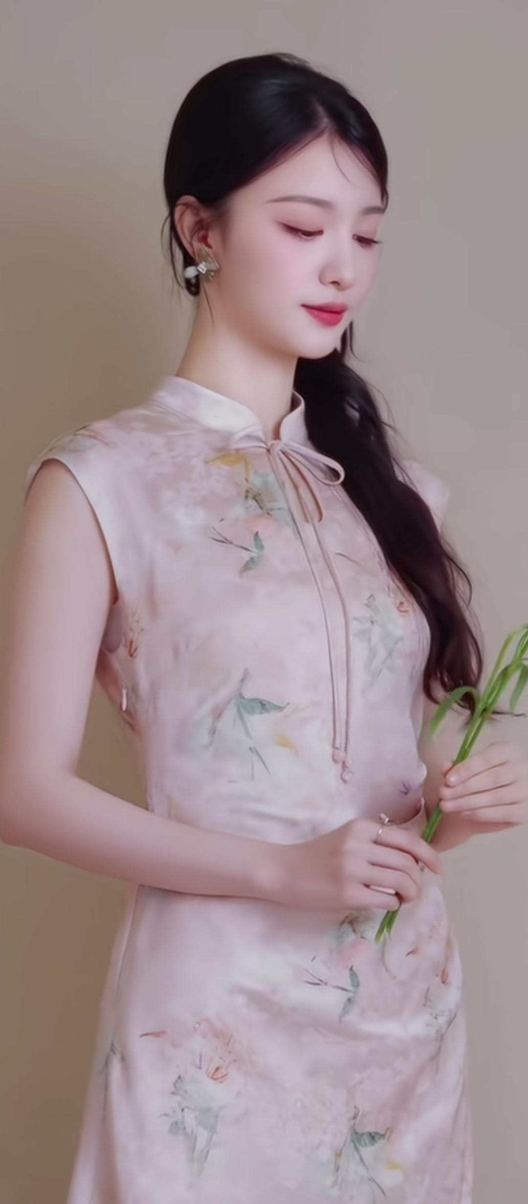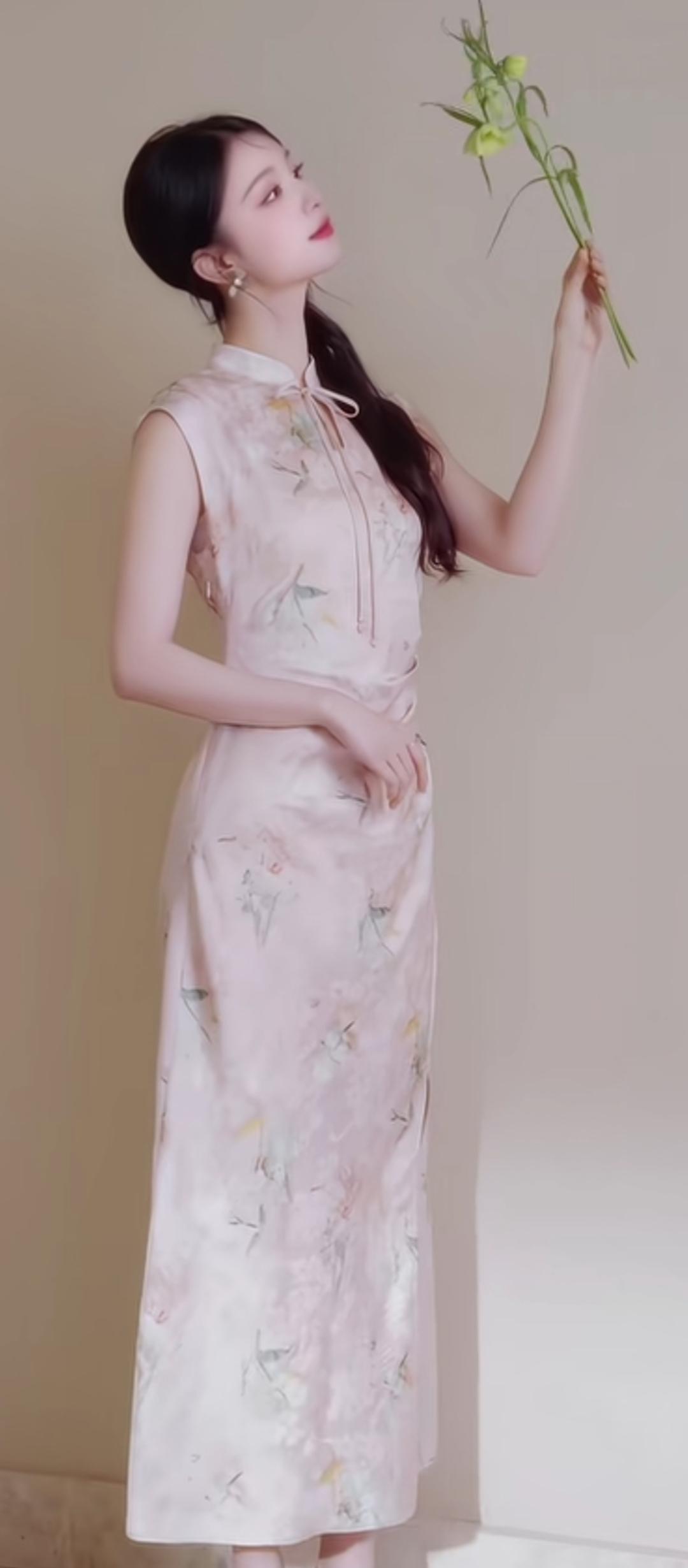 温柔优雅的粉色旗袍,散发着古典韵味,尽显东方之美。