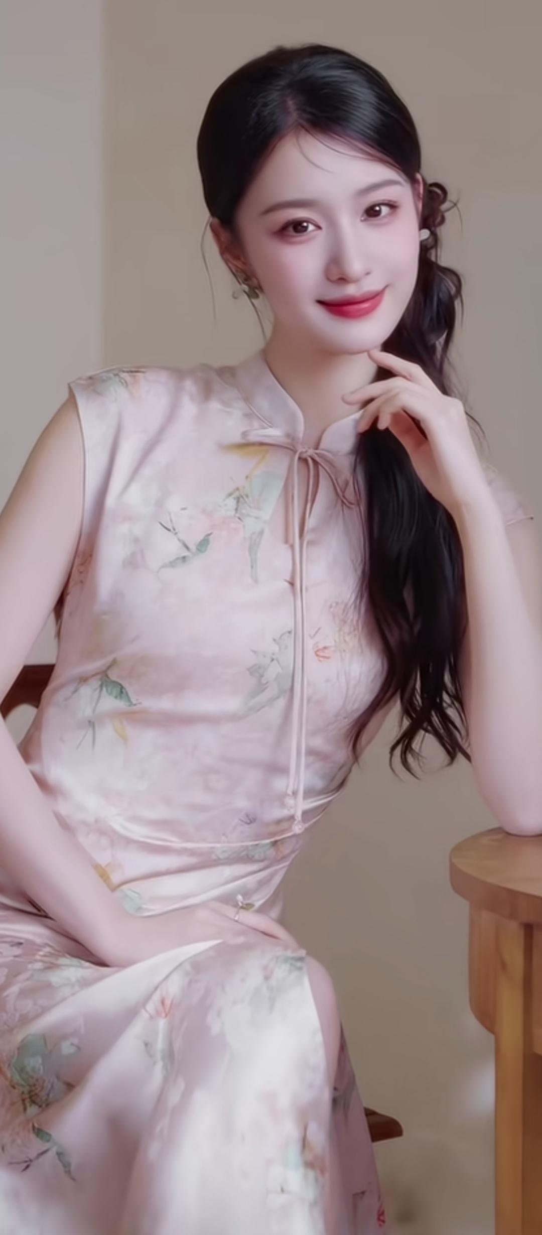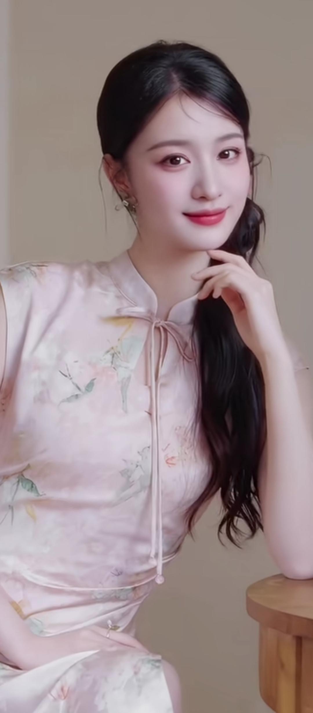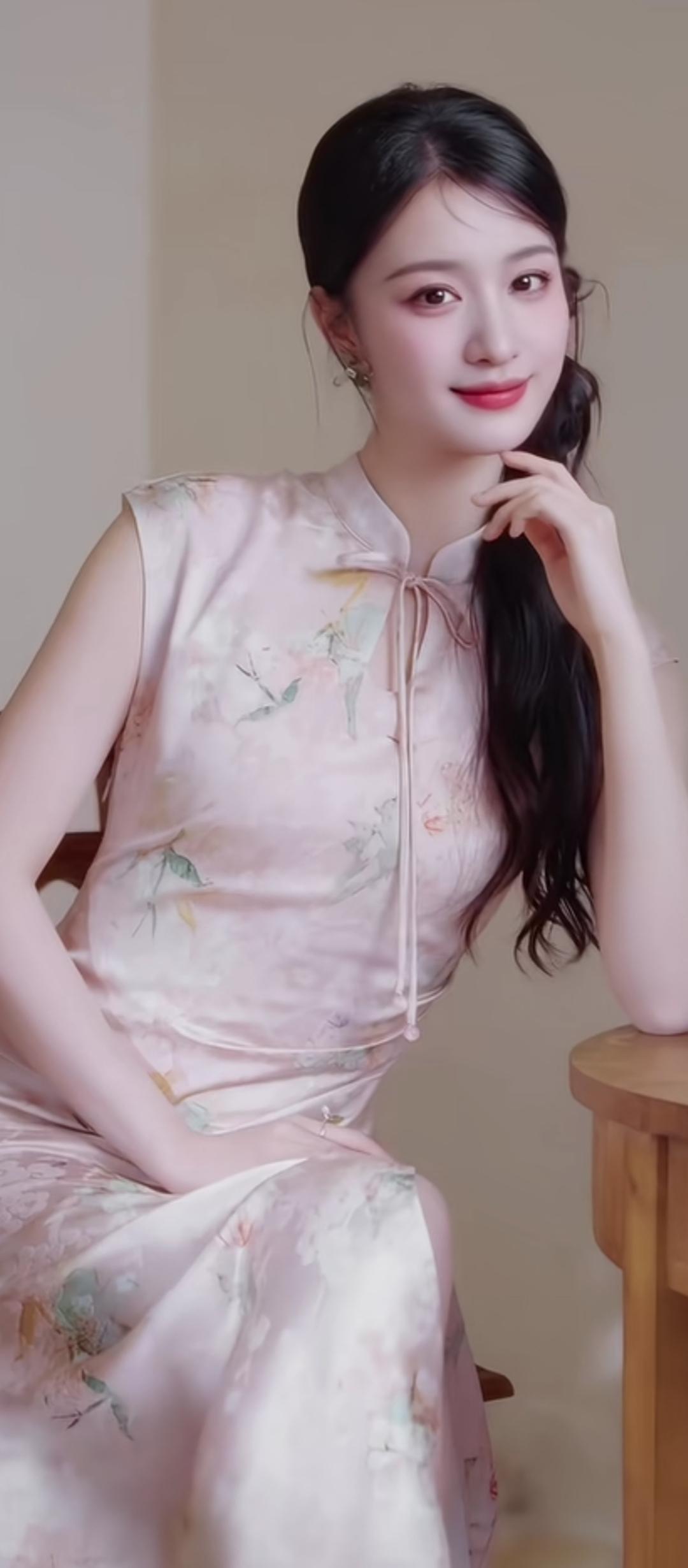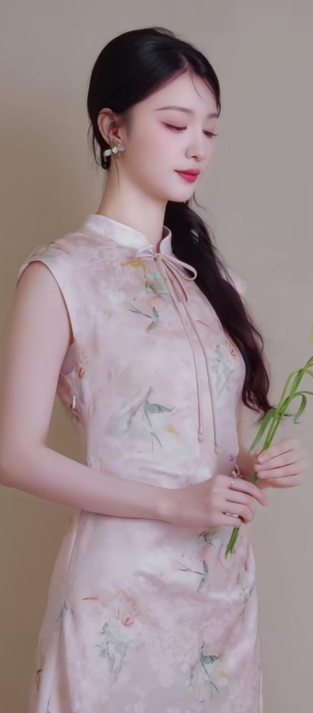 温柔优雅的粉色旗袍,散发着古典韵味,尽显东方之美。