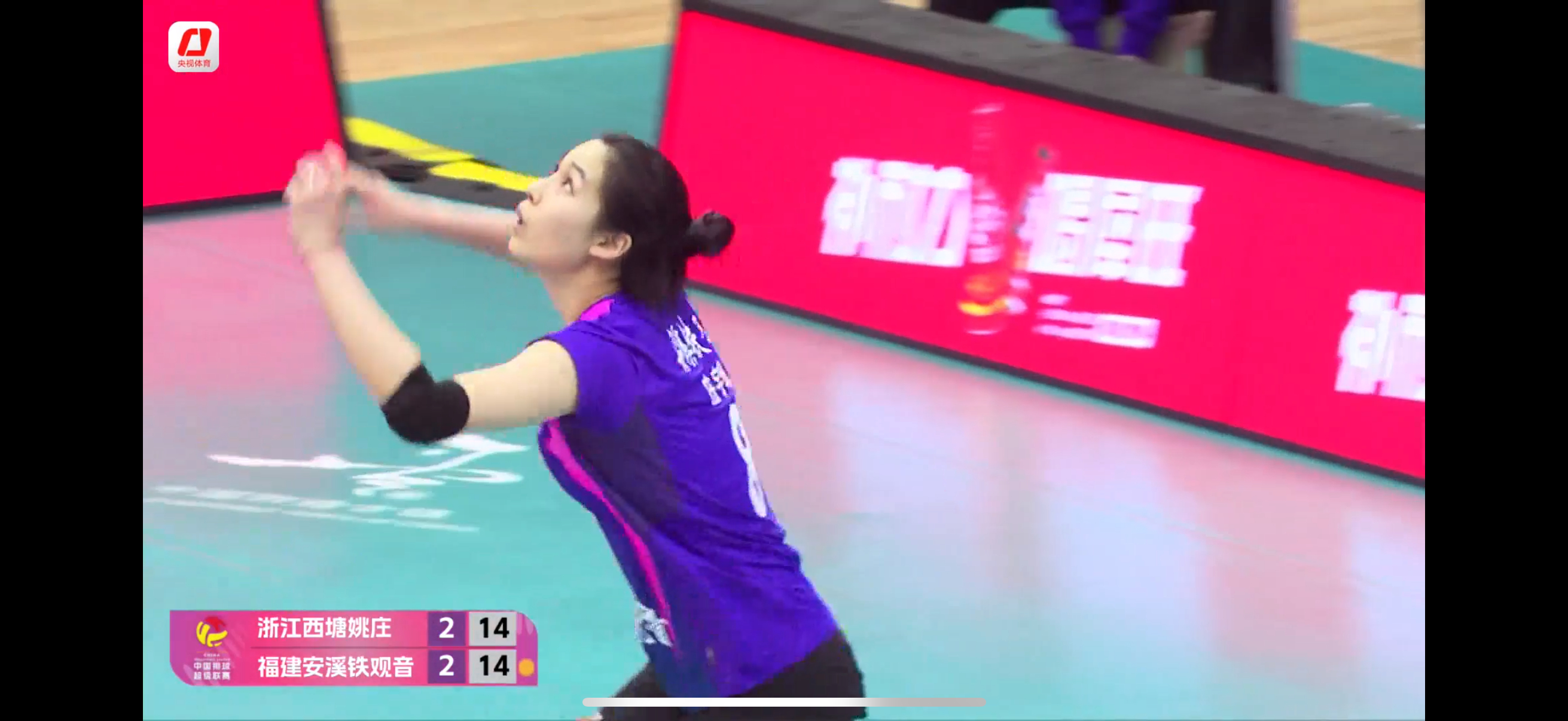 中国女排排超联赛第三局浙江女排31比29福建女排,两负比分一直紧咬,中段庄宇珊