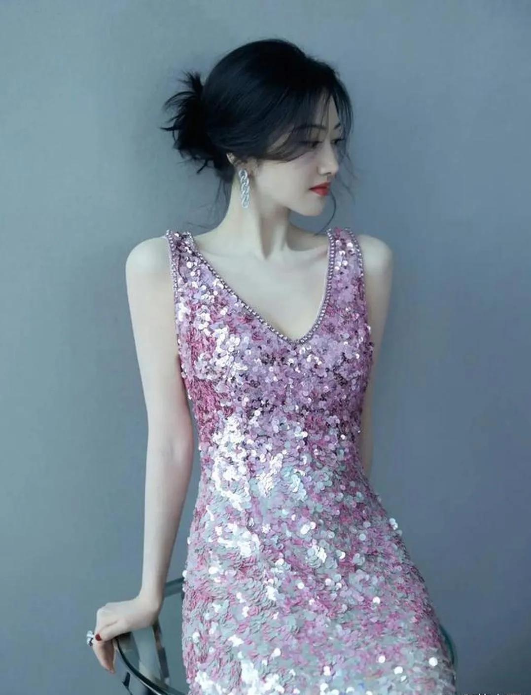 景甜粉色亮片裙封神 景甜这组粉色亮片裙造型真的绝了!V领修身剪裁勾勒曼妙曲线,满屏碎光衬得肤白胜雪,妥妥的人间富贵花本花🌸。 慵懒盘发搭配精致耳饰,红唇点缀更添风情,每一帧都美到发光,气质直接拉满💯。 景甜 粉色亮片裙 人间富贵花 明星红毯造型