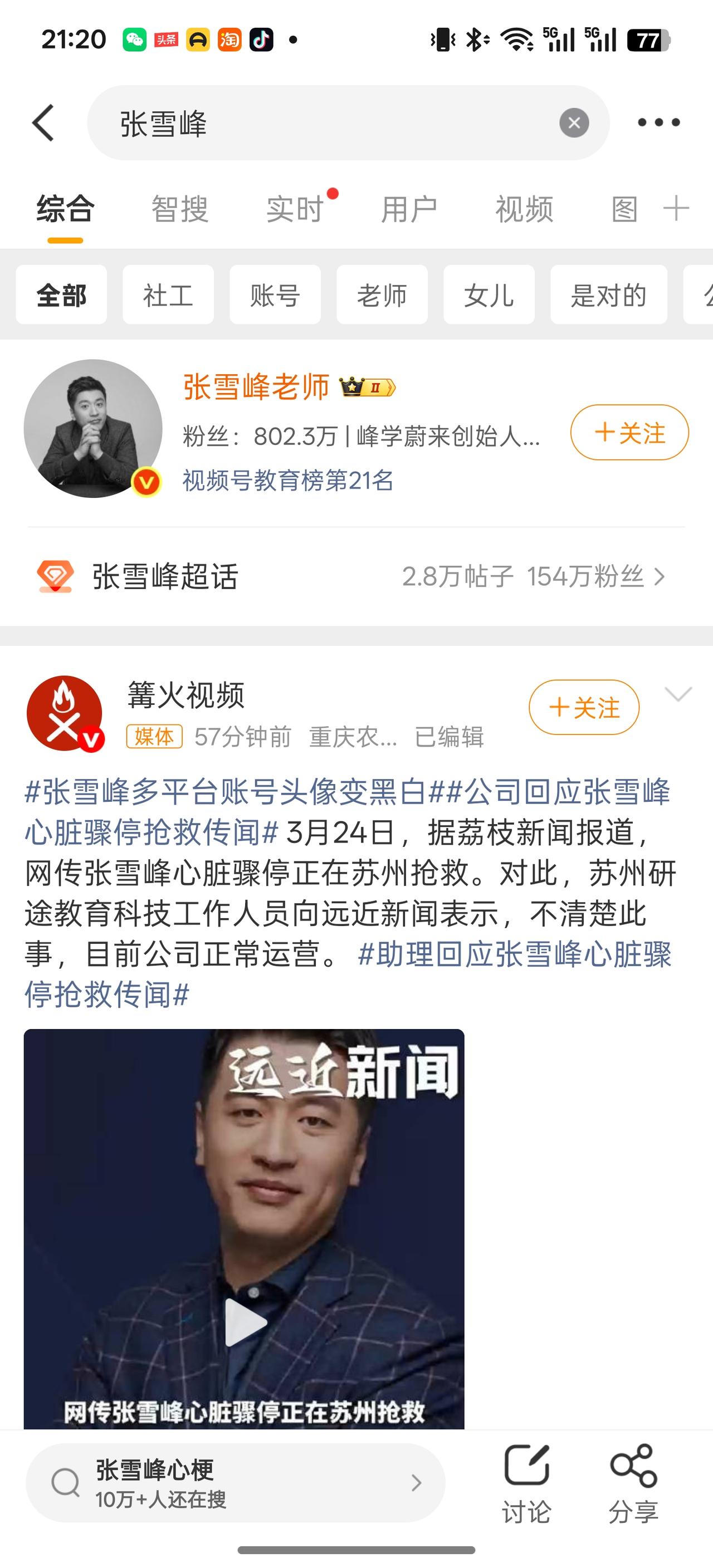 张雪峰老师这件事还没有被证实,但是他矩阵下的很多账号头像变黑白了,哎!