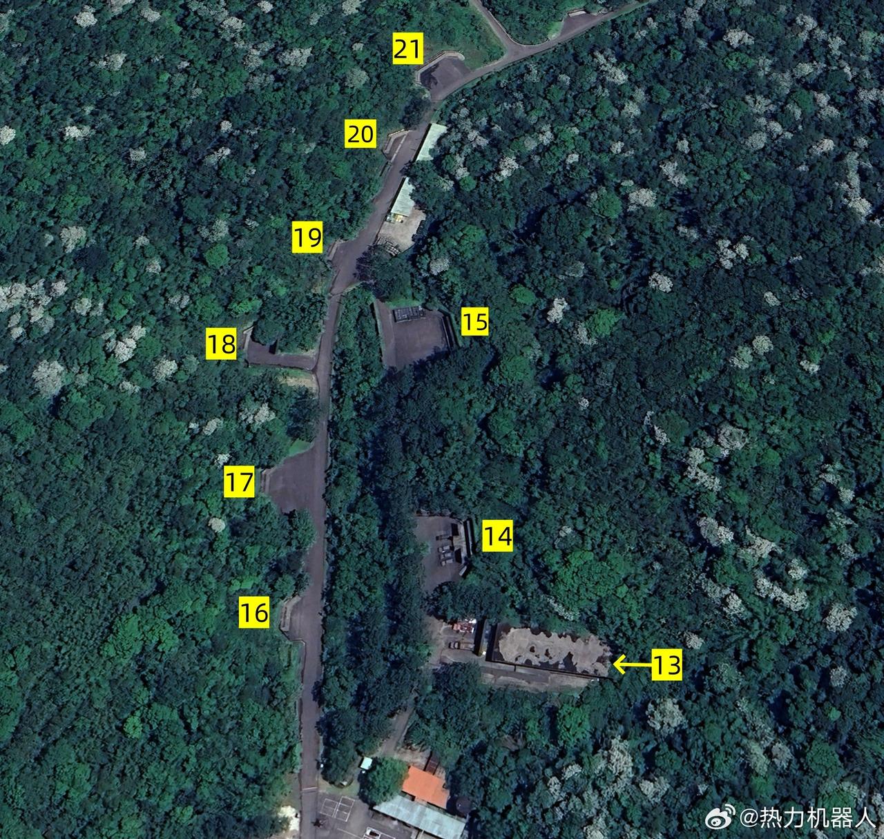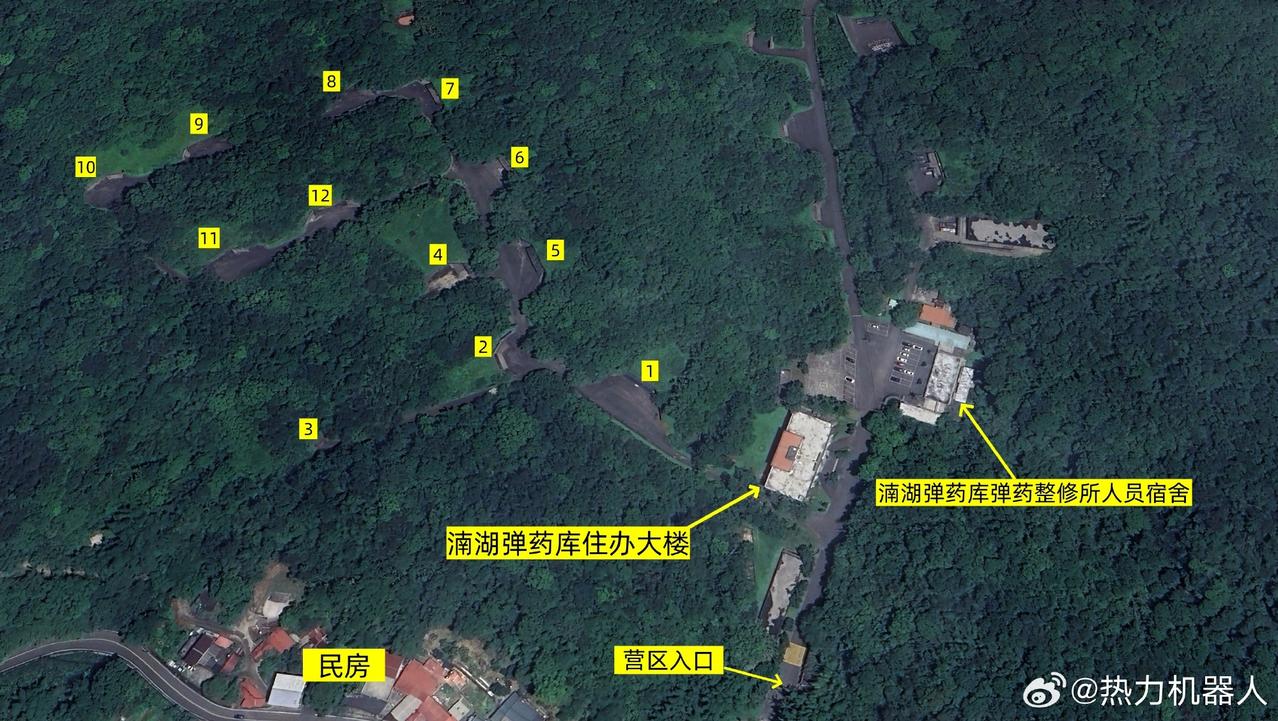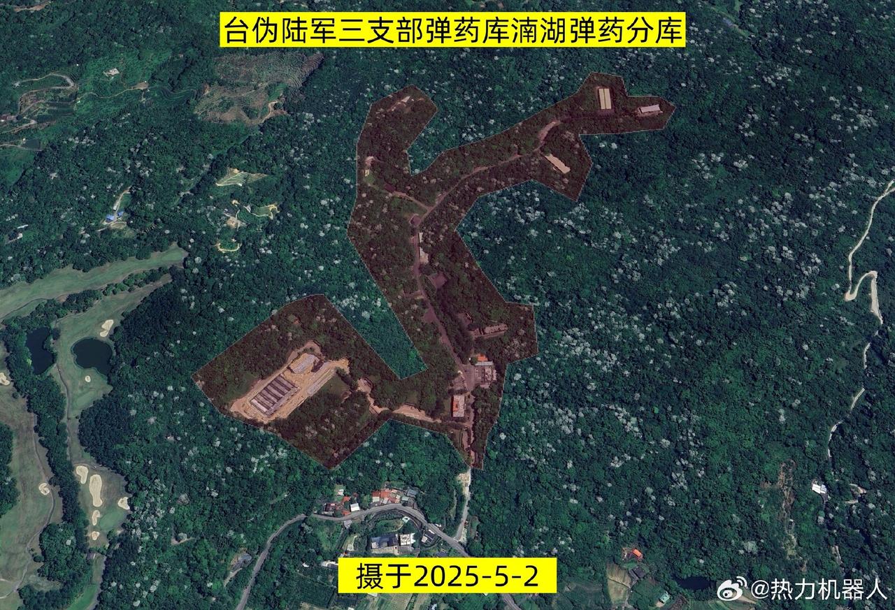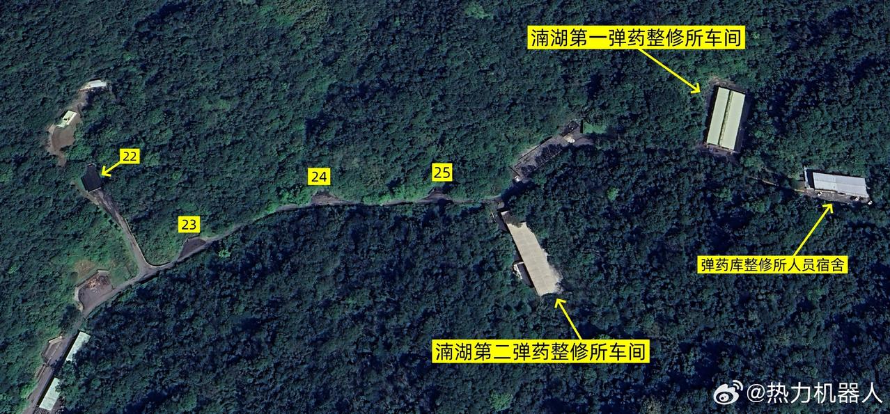 从卫星图看伪台陆军新建的大型弹药库 伪台陆军六军团第三地区支援指挥部下属的湳湖弹药库正在新建一大型加固弹库,坐标见(图1)。(图2)为湳湖弹药库的占地规模。其北侧1.5km处有另一座明湖弹药库,规模小于湳湖弹库,同属伪台陆军六军团第三地区支援指挥部弹药库管辖。从(图3-图4)可见,湳湖弹库正在修建一座大型千吨级的弹药库,位于湳湖弹药库西南侧,整体式钢筋混凝土结构,内部分隔为六座独立的库房。库外的预留的车辆通道宽敞,方便导弹、远程火箭弹等大型弹药的储运。(图5)为台伪人员在湳湖弹库进行作业训练,湳湖弹库大体分南部,中部,西北部,北部四个区域。其中,南部区域有营区出入口,营区住办大楼,湳湖第二弹药整修所人员宿舍等设施。南部部分原有12个加固弹药库(图6),距离民房直线距离不到200米。中部区域有9个加固弹药库,其中13号弹库无伪装(图7)。西北部分为轻兵器及火药销毁区(图8)。北部部分有4个加固弹药库(图9),其中22号弹库无伪装,整个湳湖弹药库原有25座加固库房,目前11、12号弹库已拆除新建大型弹库。同时,湳湖弹库内还设置有2座弹药整修所,用于弹药维修保养。这些新建和改造弹药库应该是存放近年来伪台陆军六军团列装的新弹药和伪台从美国购置的新装备弹药的。