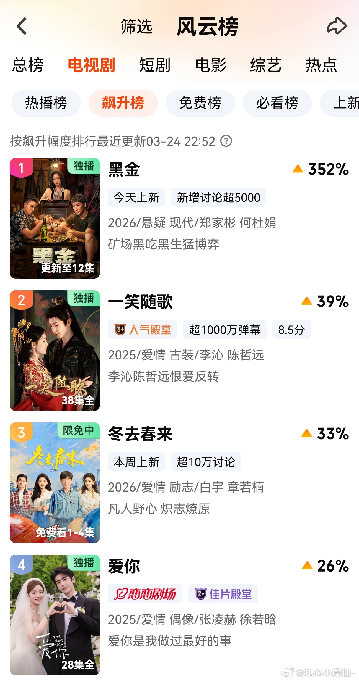 《一笑随歌》飙升榜第二,热度也涨了看这事闹的