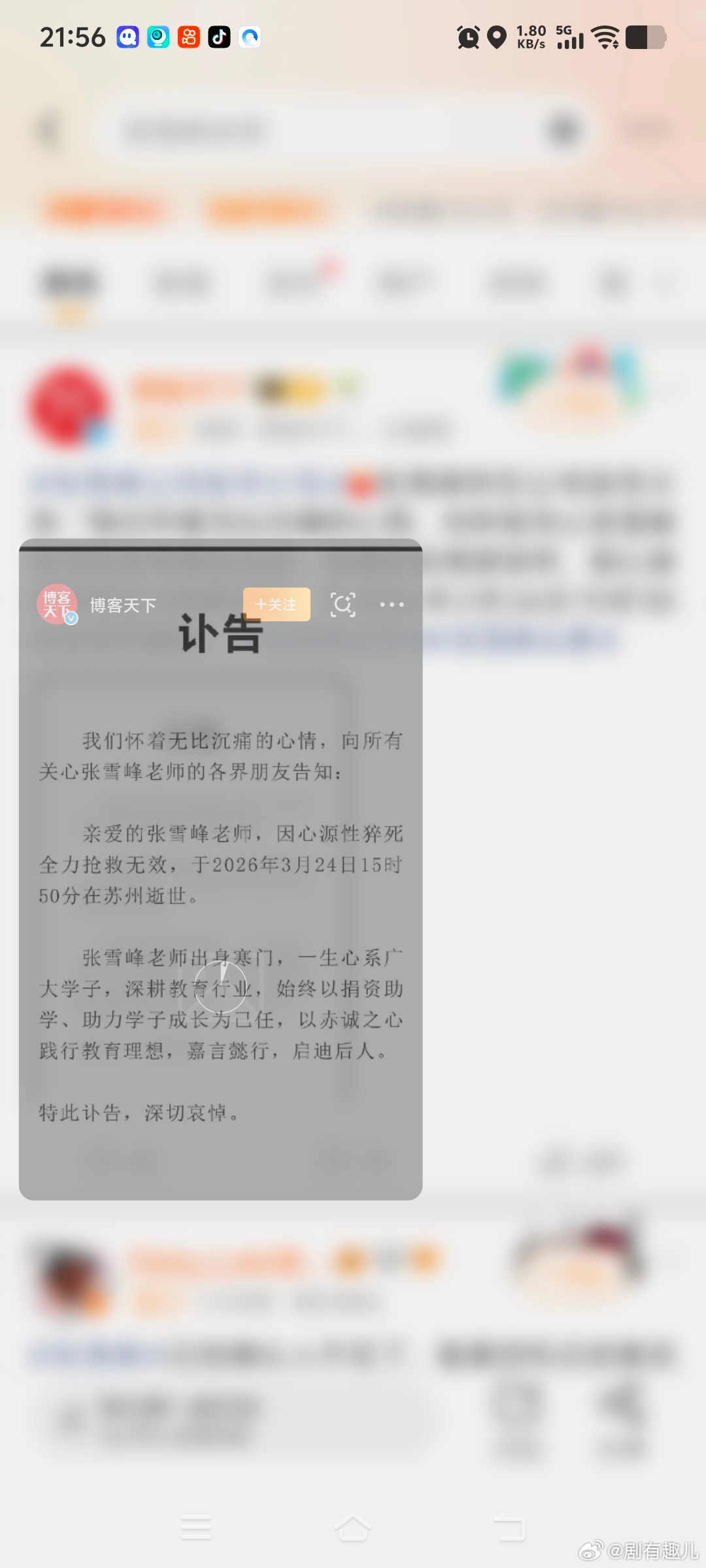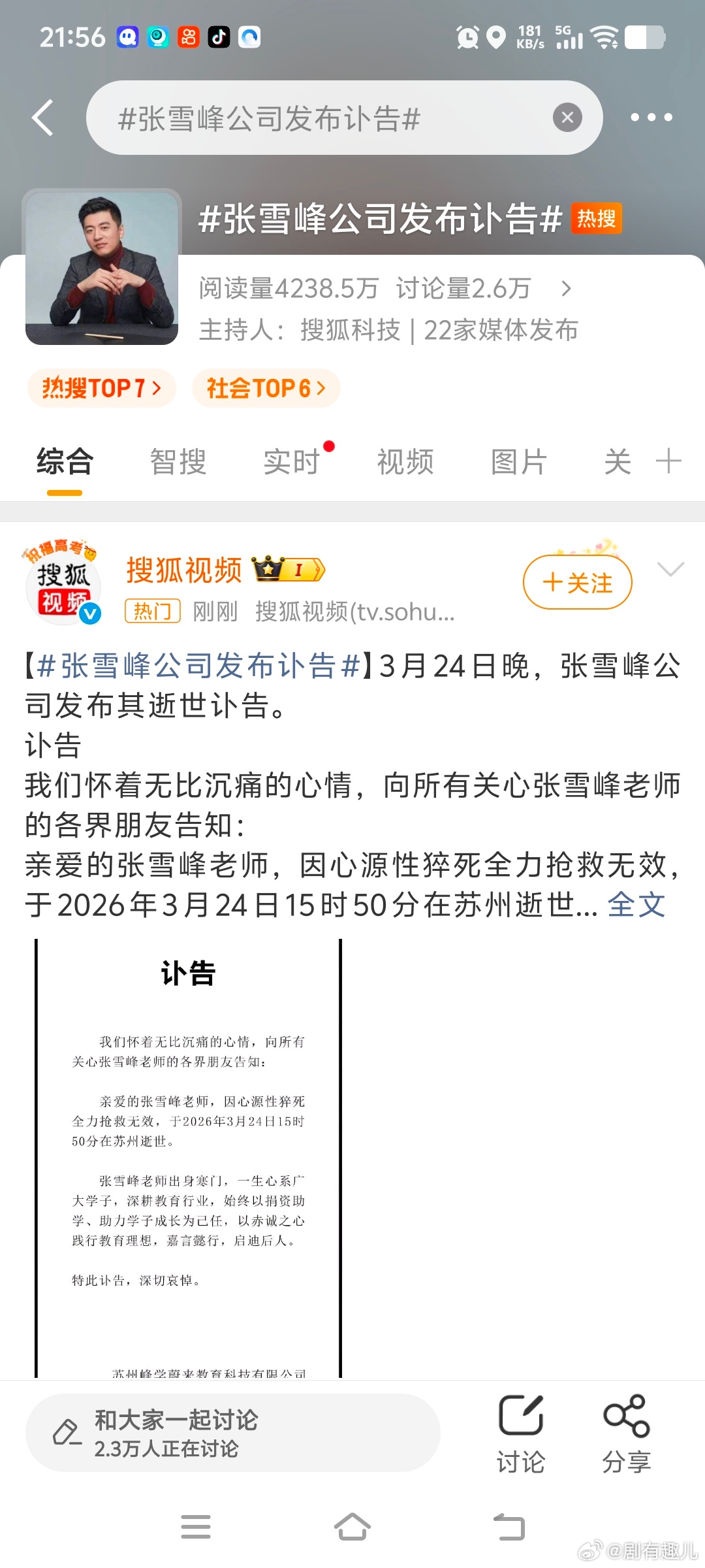 41岁3月24日晚间,苏州峰学蔚来教育科技有限公司官方发布讣告,知名教