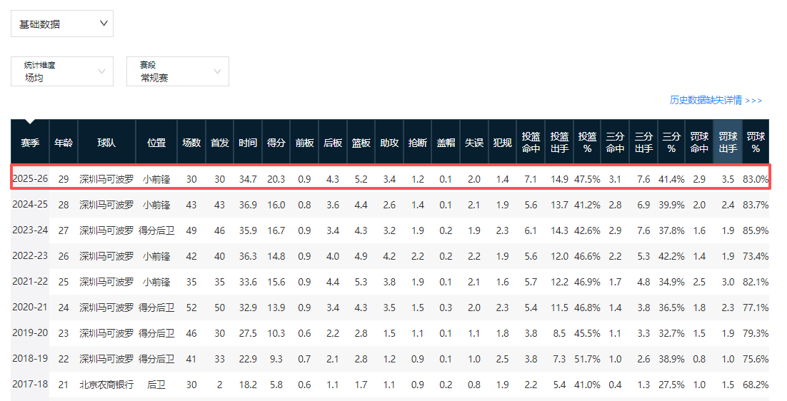 贺希宁目前已经打出了他生涯的最高水平,场均20.3分5.2篮板3.4助攻1.2抢断,本赛季带领深圳队已经拿到19胜11负的战绩。