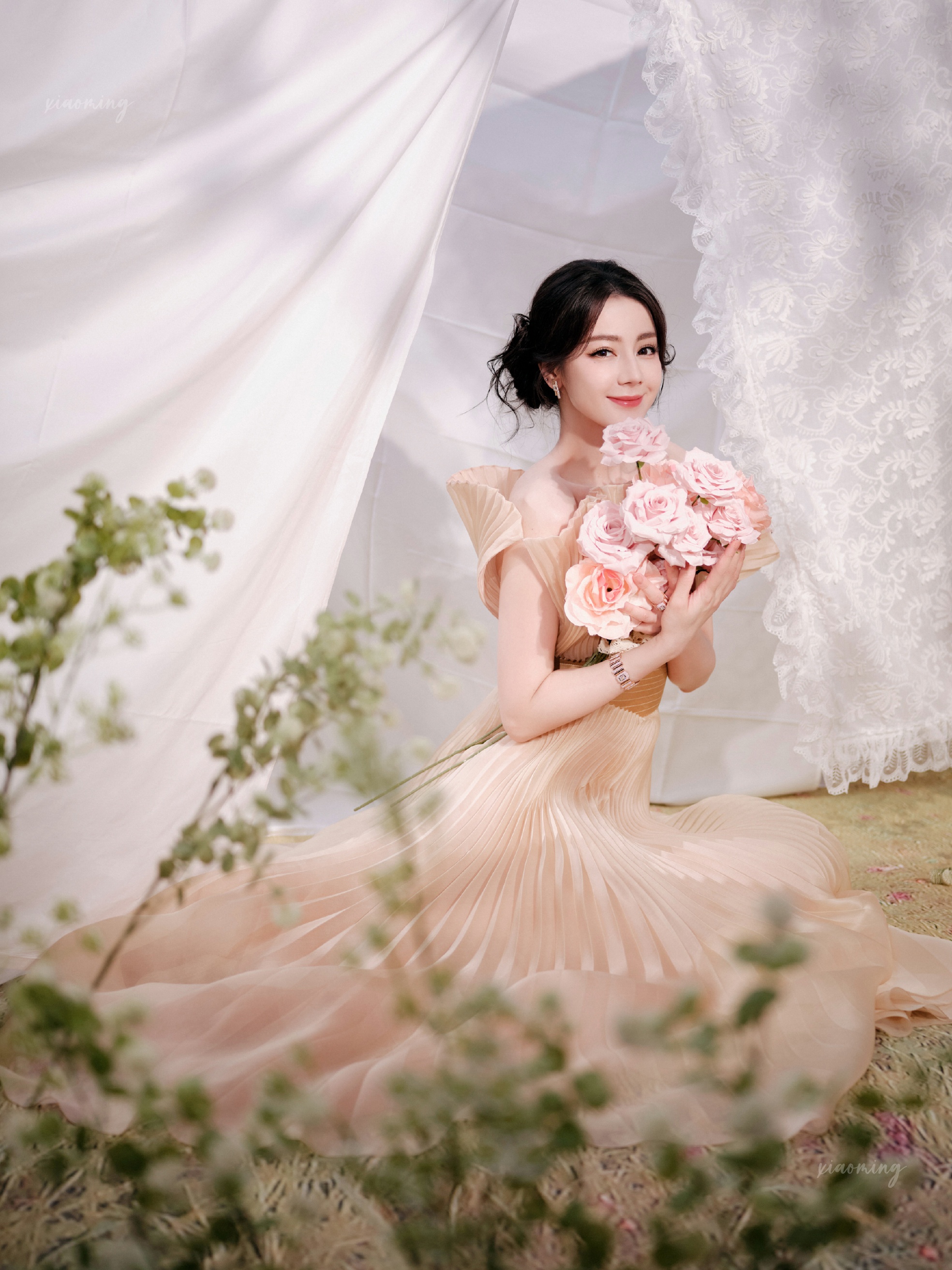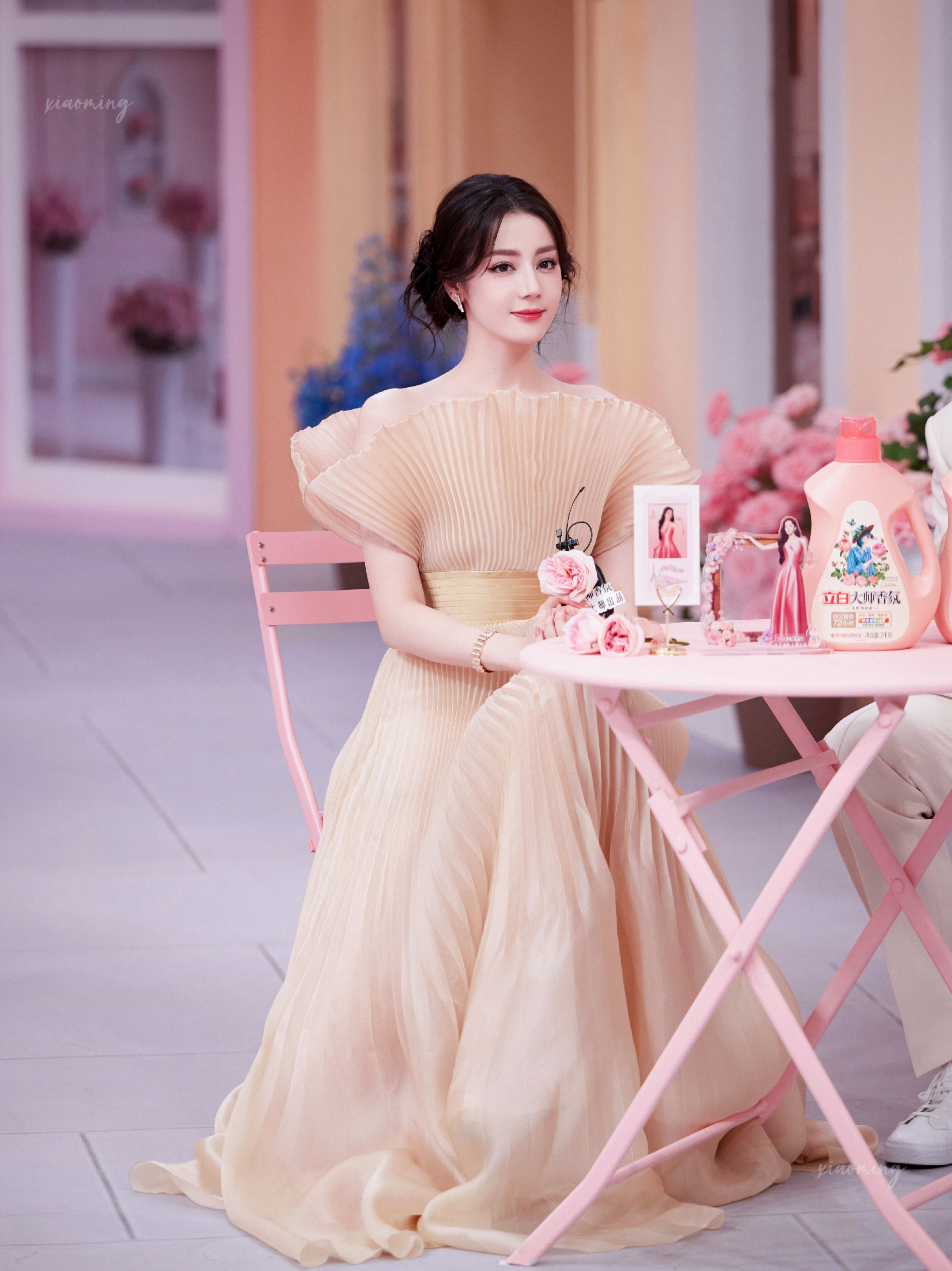 迪丽热巴是裸色纱裙晕开的柔光,是荷叶边勾勒的优雅