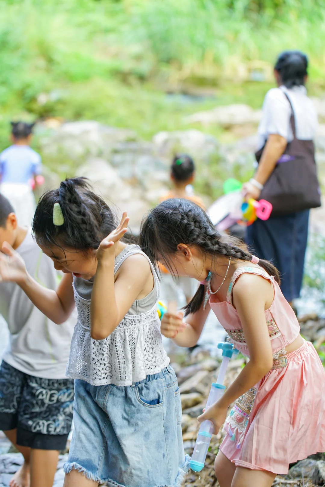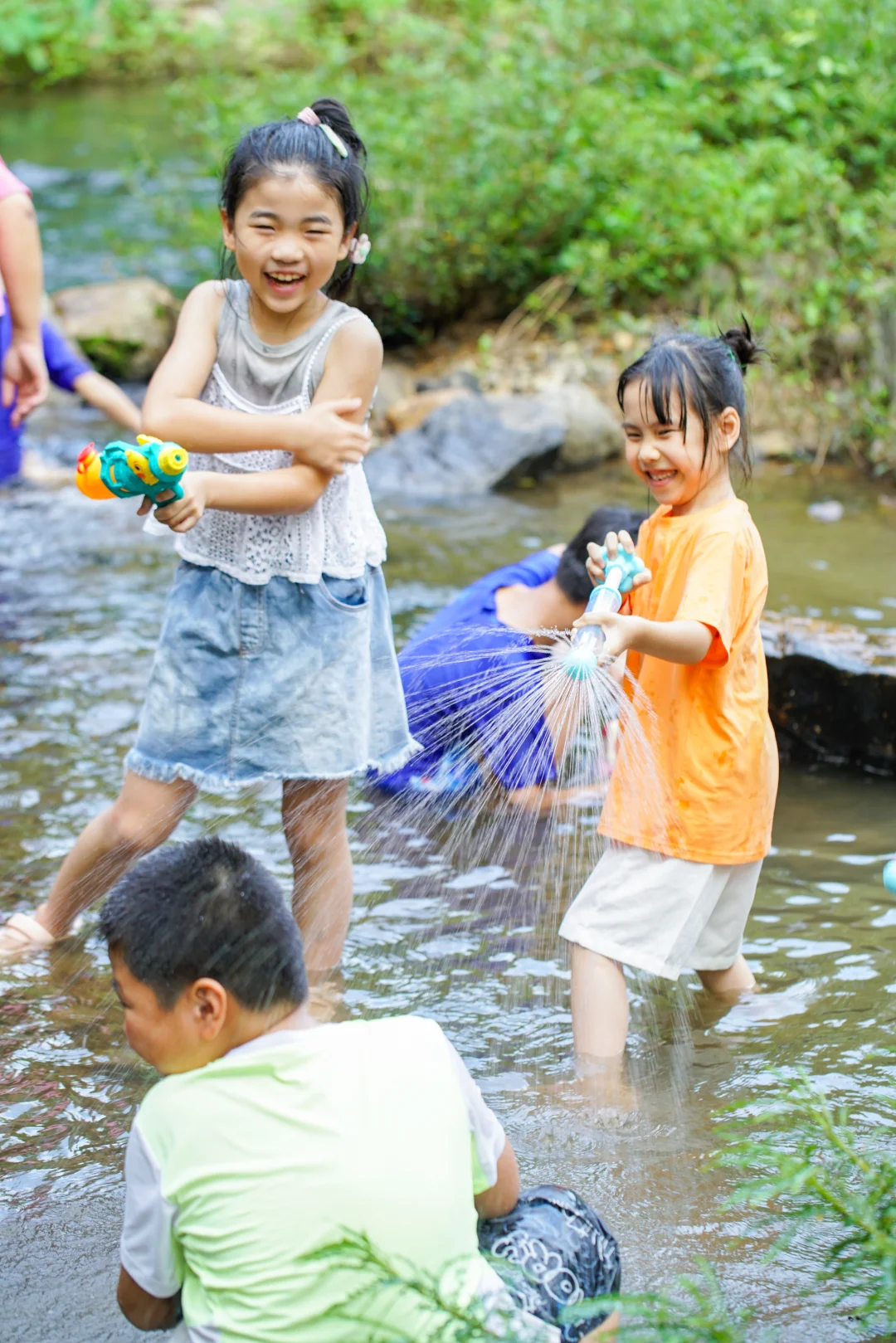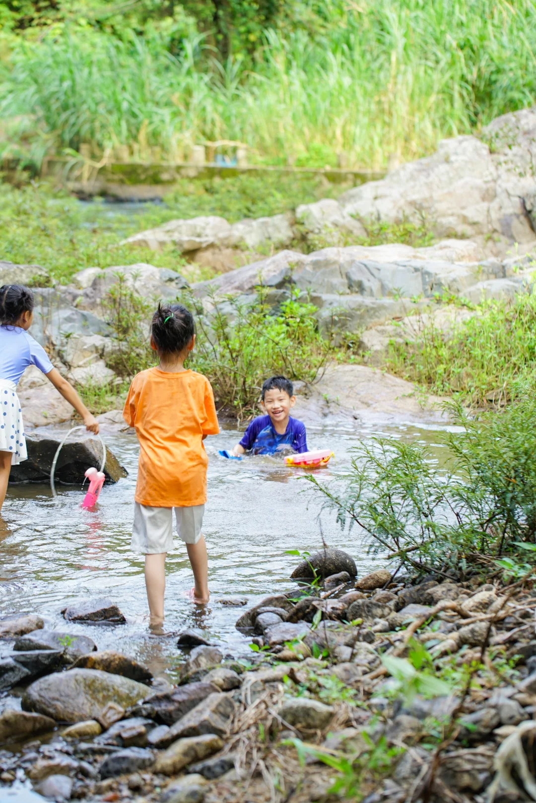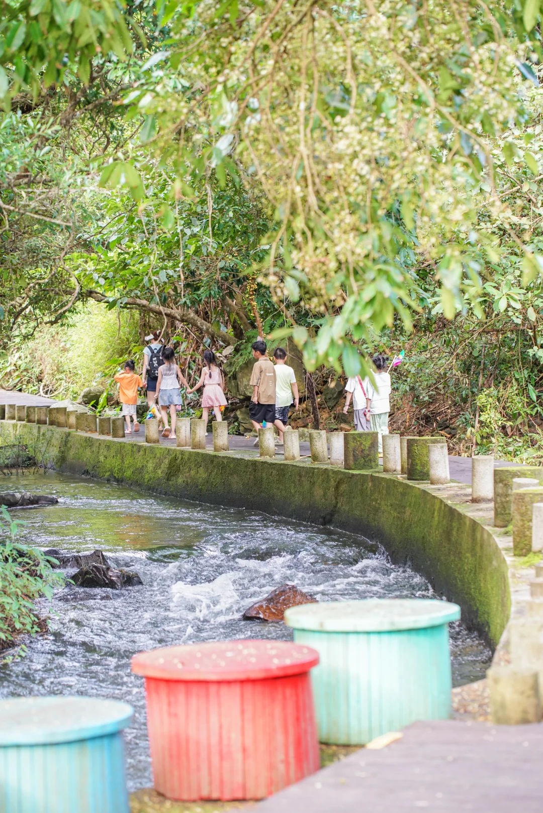 春天的河水温柔又清澈。允许孩子们脱掉鞋袜,把脚丫伸进水里凉快一下!捡捡奇形怪状的石头,或者和小伙伴打一场水仗。衣服湿了没关系,童年的快乐才最珍贵呀~