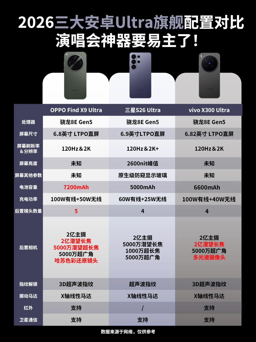 今年安卓Ultra阵营真的卷麻了!前段时间三星S26 Ultra已经发布,3月底轮到vivo X300 Ultra登场,然后4月OPPO Find X9 Ultra又接上,换手机的同学未来一个月可能要纠结了!