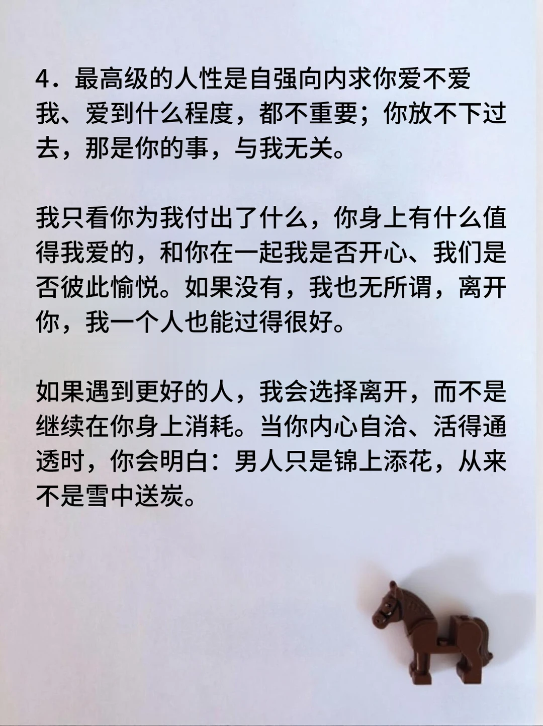 通人性者,通财富 通人性者,通幸福 通规律者,看到本质,少踩坑 情关不破,财门不开 情绪稳定,天下无敌 懂人性的都是玩家,不懂人性的都是玩具 强大自己,才是唯一的出路 实力就是尊严