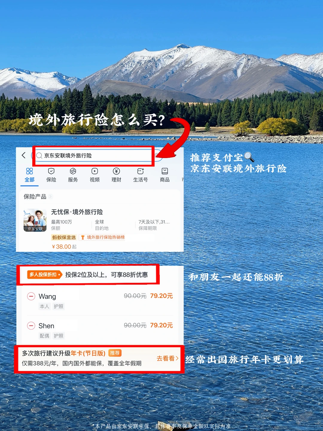 新西兰即将进入最美秋天,去年四月南岛自驾的美景依旧历历在目,解锁新西兰右座驾驶初体验,也遭遇了他车逆行车祸大堵车,陌生的驾驶路线和相反的驾驶习惯,让我加码了行车保险,无忧保的双重车险给我吃了定心丸,自在驾驶,畅享新西兰美景! 南岛自驾路线: 基督城➥特卡波➥瓦纳卡➥皇后镇➥达尼丁➥奥马鲁➥基督城 旅行难免有些小意外,每次境外游都会给家人配置无忧保·境外旅行险,保障也涵盖了旅行中的方方面面 ✅百万医疗 无忧保·境外旅行险的百万医疗保险大到住院转运回国小到感冒发烧全都保,100万医疗保障,0免赔额1元起赔。这次在新西兰品味了布拉夫生蚝🦪、黑金鲍、高山三文鱼,冷热食交替,队友不慎肠胃炎犯了,新西兰的高昂医疗费用也不用亚历山大了! ✅高风险运动保障 新西兰简直是户外运动的天堂,这次在瓦纳卡骑行环湖、皇后镇跳伞、库克山徒步、户外玩high的前提是,我们配置的无忧保·境外旅行险涵盖了高风险运动保障,以及7*24小时紧急救援!这很重要,新西兰不户外等于白来啊 ✅行程保障 每4小时延误赔300元,最高能赔1800元,托运行李延误每6小时赔500元,保额2500元。新西兰天气多变,奥克兰回国不巧遭遇台风航班取消,还好有无忧保·境外旅行险的保障,立刻整理资料申请赔付,两人赔付2400元,cover了多一天的住宿,完美化解行程变故带来的经济压力,还在奥克兰多进行了半日游 ! ✅行车保障 旅行期间租车保额7500元,自驾身意外身故伤残保额20万!第一次右舵自驾不习惯,瓦纳卡、皇后镇山路崎岖车速快,有了无忧保·境外旅行险,让我们更加轻松地应对各种驾驶环境~ ps.经常出国的小伙伴可以选择年卡哦!双人以上出行还可以88折,上支付宝🔍“京东安联境外旅行险”即可 ! 特卡波的雪山和星空 达尼丁的海豹和企鹅 皇后镇的自由和浪漫 在新西兰自家的我,是烦恼追不上的我啊
