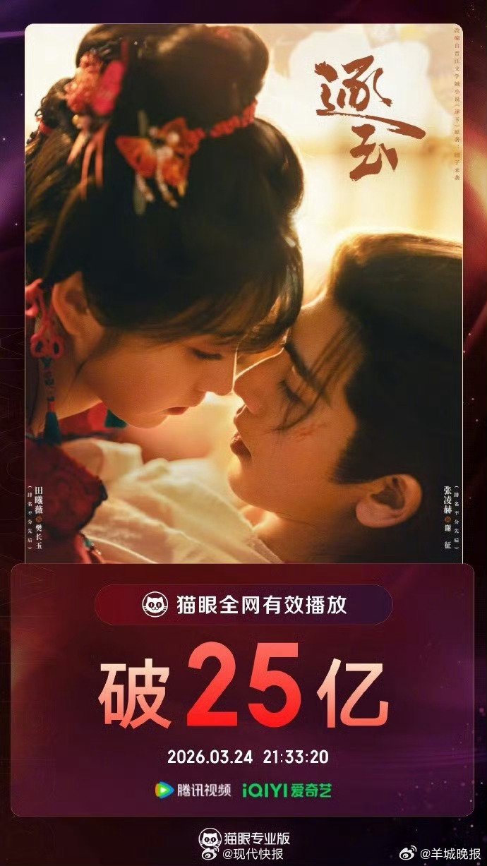 【#逐玉全网有效播放量破25亿#】#逐玉热度持续领跑中# 据猫眼专业版数据,(排名不分先后)领衔主演的网络剧#逐玉#,全网有效播放量破25亿,成今年猫眼首部有效播放破25亿剧集。戳更多>>#咖啡店偶遇甜馨嗯哼##周杰伦新歌口碑##火了还没适应的明星最好玩了##周杰伦新专辑##迪丽热巴眼技##宁艺卓ins点赞刘美贤##文淇 年轻女演员演主角等于没票房#(现代快报)(编辑:张子皓;审签:周乐瑞)