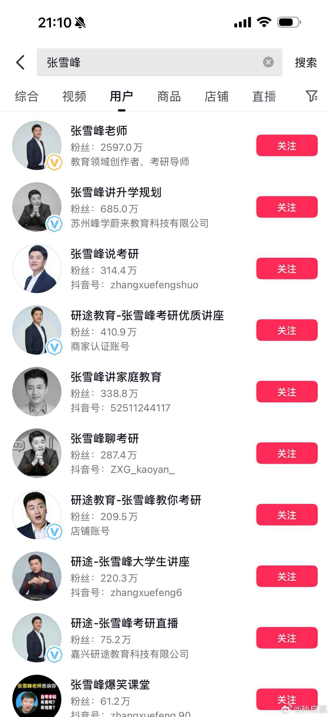 张雪峰传言是真的吗?看dy号有的灰了,有的没灰。还是不要过早下结论,等等再看吧。话说回来张老师还是很有群众基础的,单单在dy一个平台,就有这么多矩阵账号,而且都是百万粉丝,可见影响力之大。一定要保重身体
