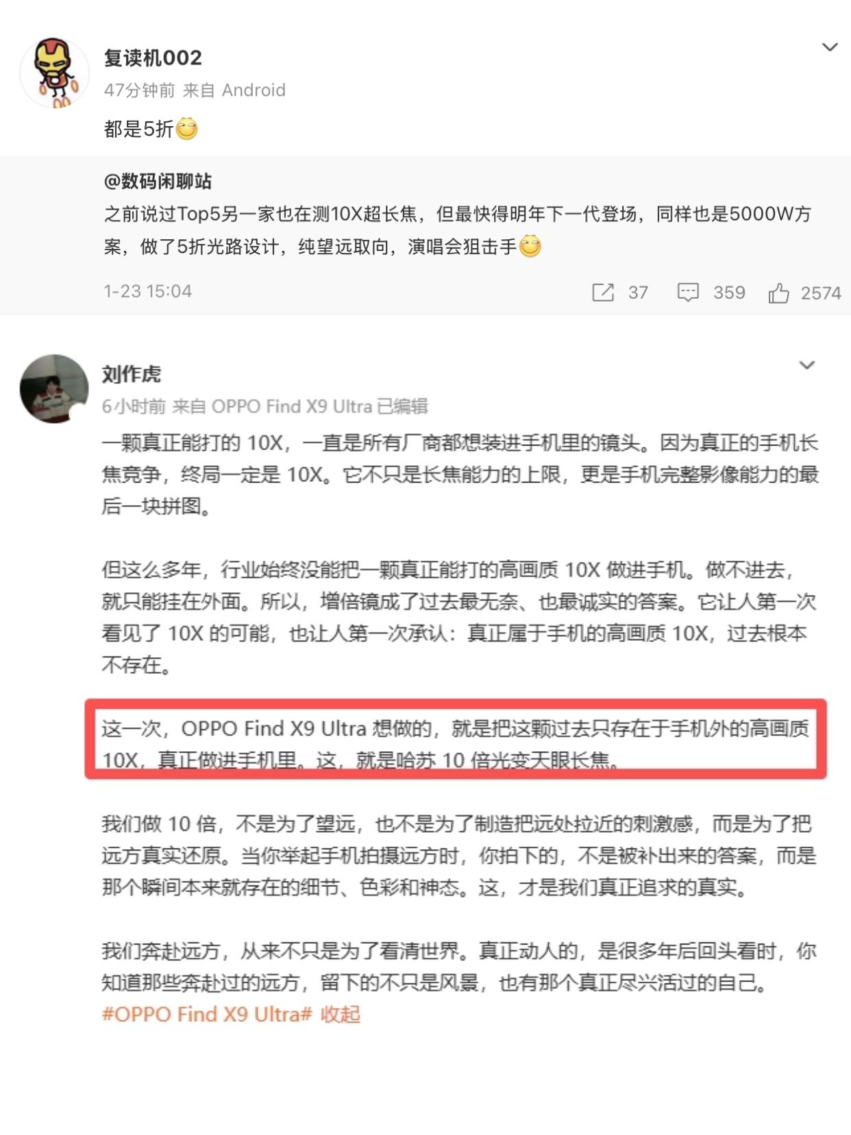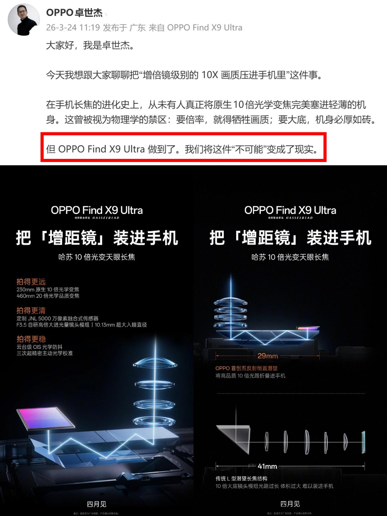 太炸裂了,OPPO Find X9 Ultra真长这样? 🫡4月份发布的OPPO Find X9 Ultra,现在网上也传出外观图了,不是...真长这样吗? 感觉设计跟前代X8U差别不大啊,不过这个绿色我觉得还挺好看的,感觉比较沉稳,也不会像黑色那样单调,橙色拍照按键很有哈苏味,大家觉得这个外观好看吗? 这次Find X9 Ultra感觉还蛮多人期待的诶,看了下爆料,影像配置确实升级太大了👇 📷2亿主摄+2亿3X潜望长焦+10X光学变焦的潜望长焦+5000万超广角+新一代丹霞色彩还原镜头 双2亿双潜望五摄,直接塞在一部手机里,就问你怕不怕🤣 主要是长焦很有看点啊,毕竟现在都啥手机有10X光学变焦了,OPPO这个据说是直接把增倍镜级别的10X画质压进手机里的,用上了OPPO首创的五反射倒置潜望,据说这个10X的光变方案还领上友商一年,友商想跟进却还得研发一年! 看张老板发的样张对比,效果确实很夸张。同样是10X变焦,放大看隔壁机型的人脸皮肤几乎就是涂抹完了,OPPO的就还能看到比较明显的肤质纹理,光学变焦,真有点强的哦 只能说OPPO现在是先上强度了,后面超大杯估计又有一轮大混战,就看4月份Find X9 Ultra发布还有没有其它惊喜吧,大家怎么看?