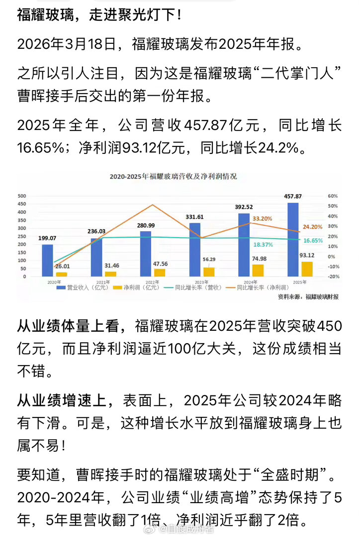 福耀玻璃,猛踩油门!业绩狂飙:二代掌舵首份年报,净利近百亿