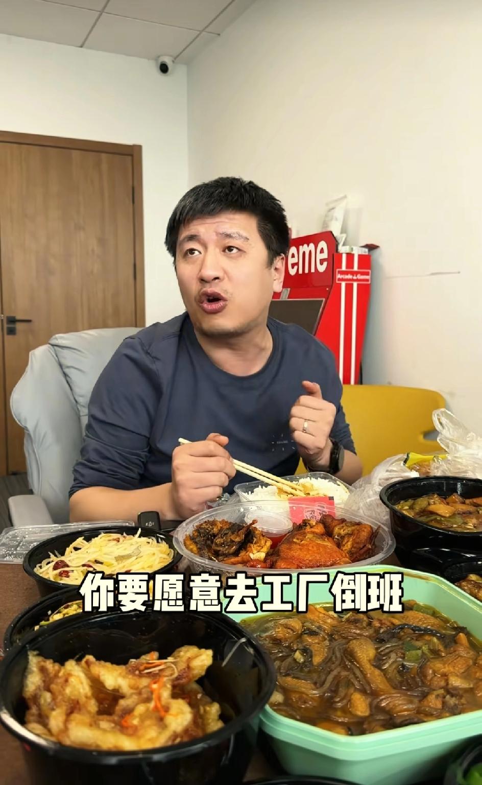 挣这么多钱吃这些外卖垃圾?他老婆、同事没人劝他吗?可惜了!钱不是万能的!身体健康第一!