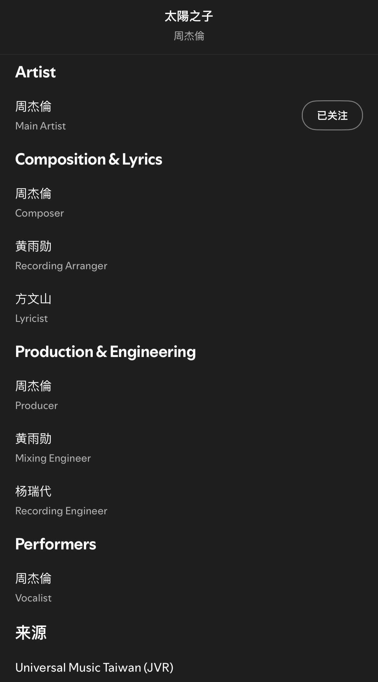 周杰伦新专辑 《太阳之子》全专13首歌曲的词曲创作人及编曲制作人公开周杰伦新歌口