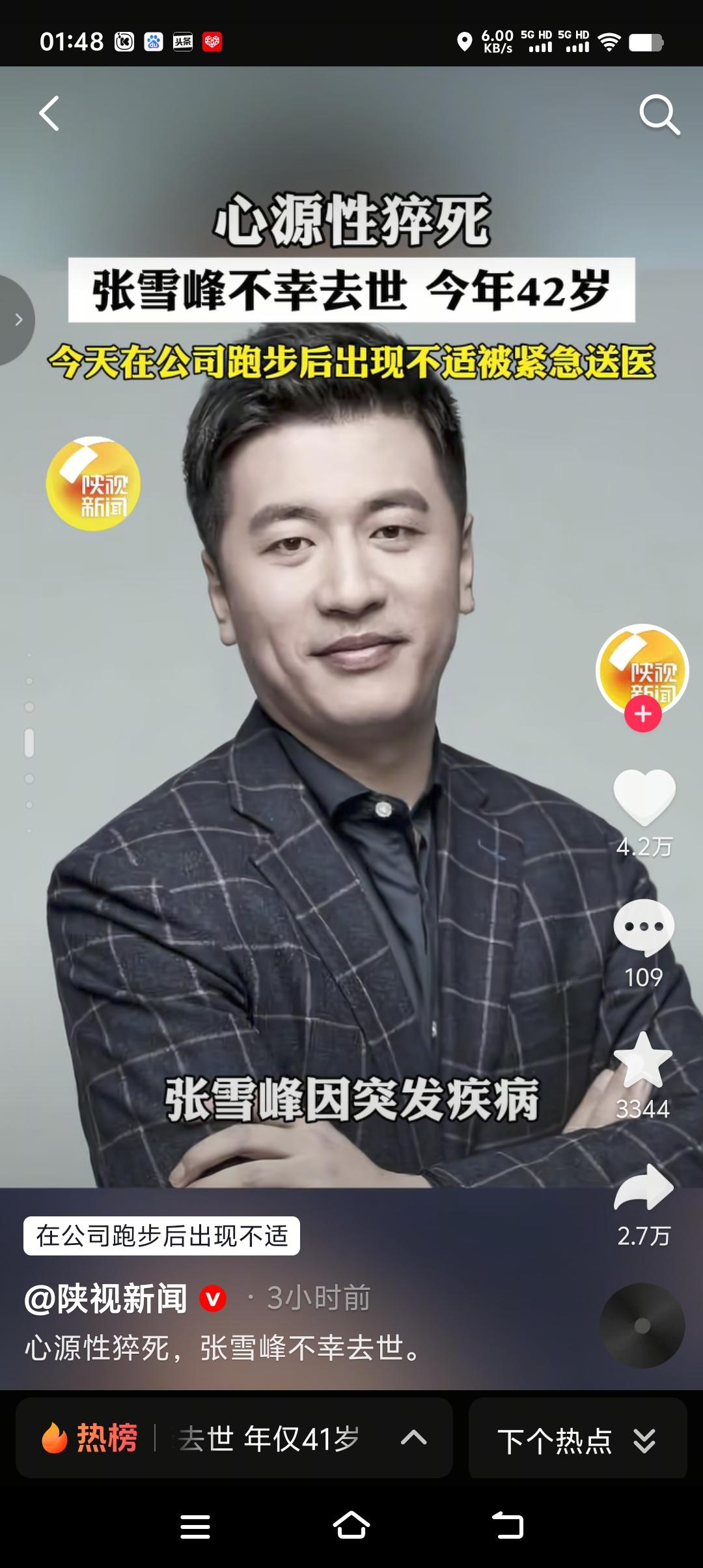 张雪峰的死再一次向我们证明了,人的命天注定,胡思乱想不顶用,生死由命,富贵在天,万般皆是命,半点不由人。阎王叫你三更走,绝不留你到五更,一切都是定数。 1984年5月18日出生,属鼠,41岁正当年,在公司跑步时发生猝死。你能说他身体不健康吗?你能因为担心猝死就不敢跑步吗?如果真是这样的话,那么每天奔波于生计的那些高强度体力劳动者就都该失业了。所以说与其说是心梗还不如说是命,该来的你防不住,不该来的你不用防,有些人发作时正好在医院,抢救成功了,有些人发作时正好有医生路过,抢救成功了,有意无意一切都是天意。 生命在于运动,但运动不一定能延长生命。物极必反,我们没有必要刻意做某一件事,一切随心所欲、顺其自然就可以了!